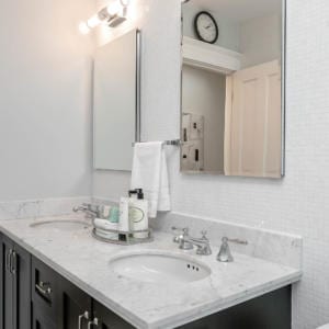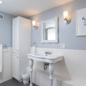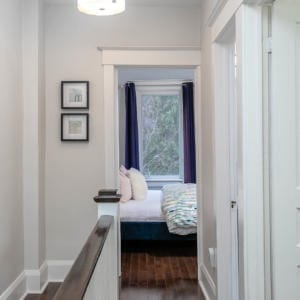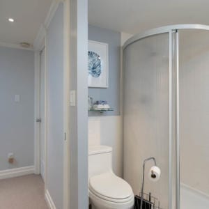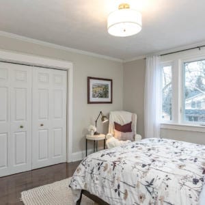 The second floor has three spacious bedrooms and the master features a double closet with built-in organizers. The luxurious bathroom has beautiful tiles and counters, plus double sinks and a soaker tub. The basement has been dug down, waterproofed and fully renovated with plenty of built-in shelving and storage, not to mention a cozy gas fireplace with a barnboard surround.