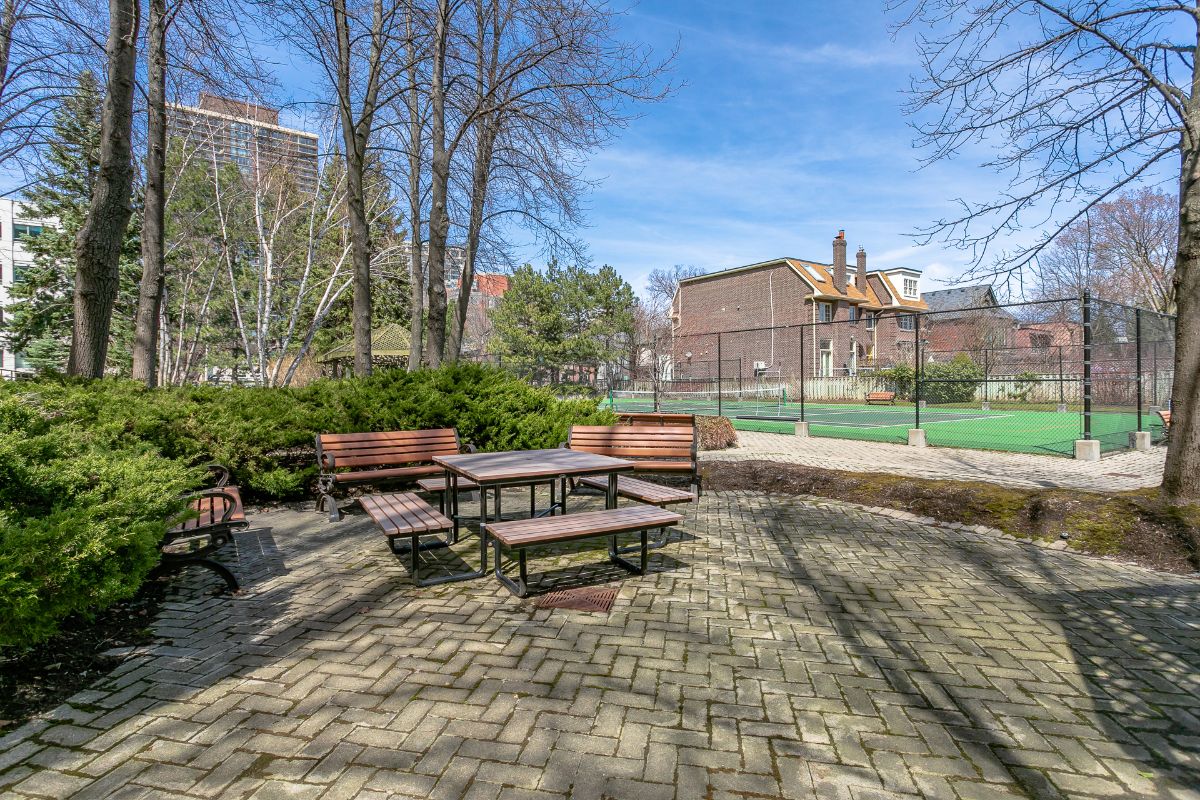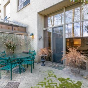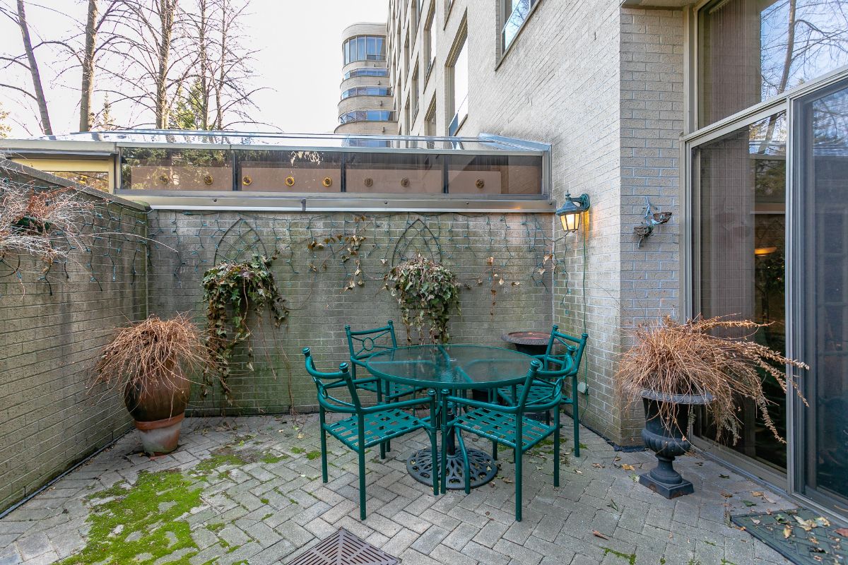 103-1177 Yonge Street Toronto – Rare opportunity to own in The Ports at Summerhill. This unit is wonderfully situated on the main level (no elevator required), where you can walk from the suite right onto a unique, private, garden terrace with walls and a gate (includes table and chairs, cushions, canvas umbrella, outdoor mini-lights, urns and wrought iron wall planters). It’s just steps to the BBQ area, enchanting gardens, gazebo and tennis courts. This is a peaceful, country setting in the heart of the city, in a premium boutique building, with the Summerhill TTC station a minute or two walk away, and ravine trails to the Brickworks and area, great for running and hiking. Enjoy all that Yonge Street has to offer – grocery stores, banks, butcher store, fish shop, fruit and vegetable shops, LCBO, many excellent restaurants and coffee shops – all just a very short walk away. One underground parking with extra-large locker right behind. Great price per square foot, this unit is an ideal down-sizers’ city pad, and a great entry point for first time buyers or an excellent opportunity for a condo investment property.