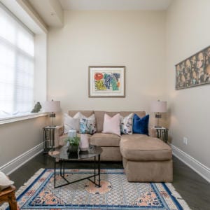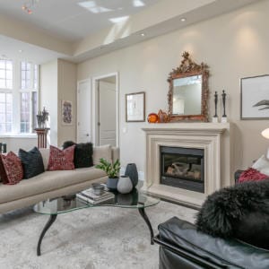 Sophisticated and sunny two bedroom plus den condo in sought after neighbourhood. This 1420 sq foot unit has high ceilings and oak hardwood floors throughout. Magnificent kitchen with plenty of cabinets and high-end stainless steel appliances. The living area features a mantled fireplace, and the dining room is showered with light from the huge bay window. Elegant & spacious master retreat with 5pc ensuite and walk-in closet.