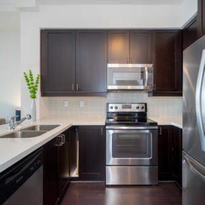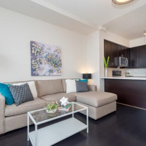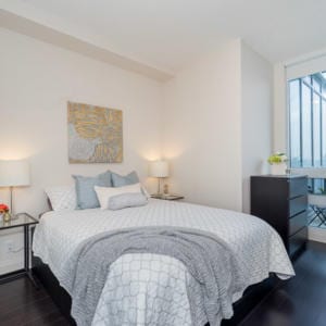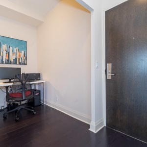 1185 The Queensway, Unit 510 is a stunning 1 bed plus den, 1 bath suite with 9′ ceilings. Extensive upgrades include kitchen cabinetry, stainless steel appliances, backsplash, quartz counters in the kitchen and bathroom, engineered hardwood and tiles. Showered with light from floor to ceiling windows and balcony. The highly functional den space can be used as an office, second bedroom, or media area. The building has 24hour concierge, visitor parking, pool, and exercise room.