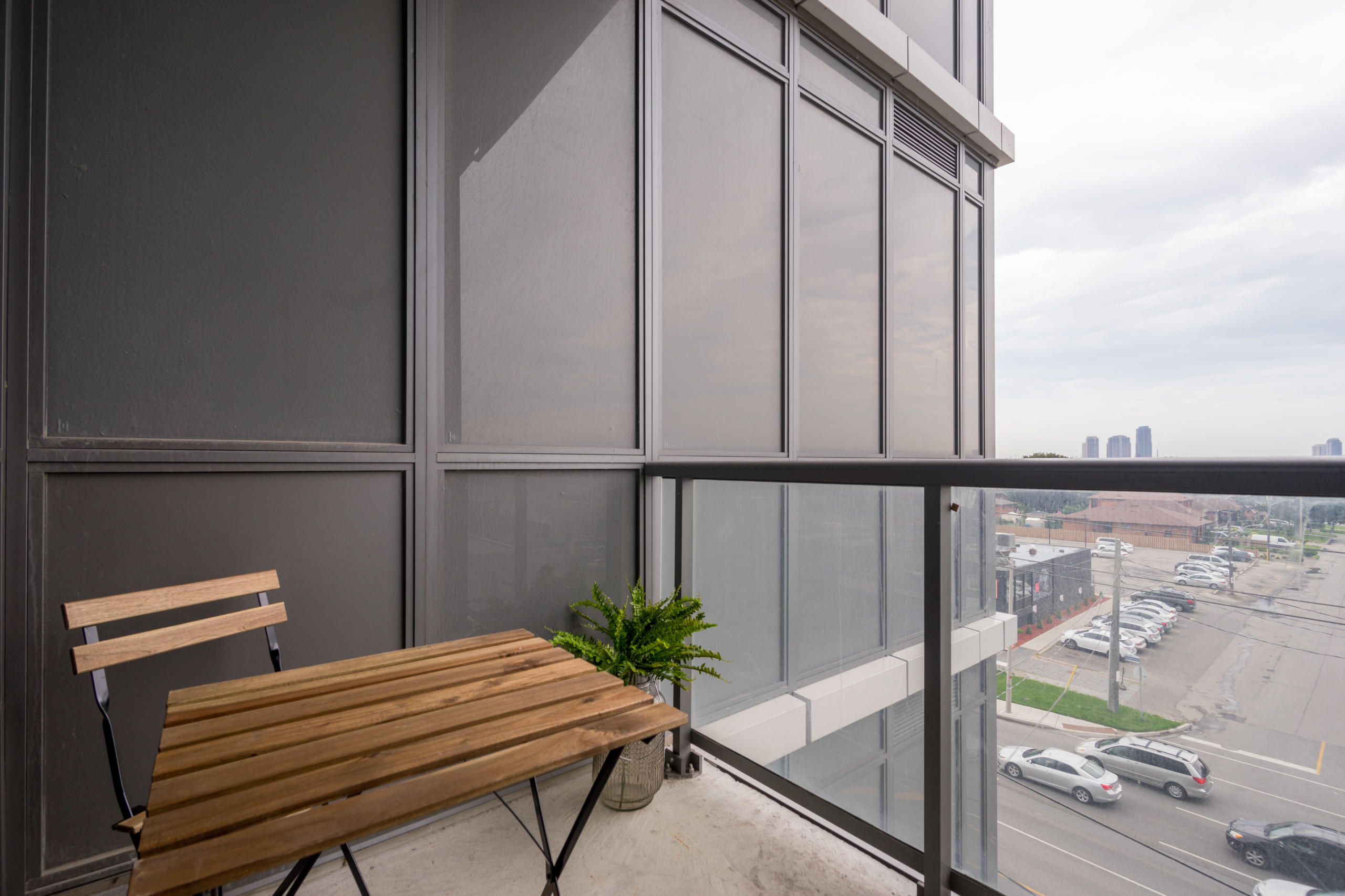 1185 The Queensway, Unit 510 is a stunning 1 bed plus den, 1 bath suite with 9′ ceilings. Extensive upgrades include kitchen cabinetry, stainless steel appliances, backsplash, quartz counters in the kitchen and bathroom, engineered hardwood and tiles. Showered with light from floor to ceiling windows and balcony. The highly functional den space can be used as an office, second bedroom, or media area. The building has 24hour concierge, visitor parking, pool, and exercise room.