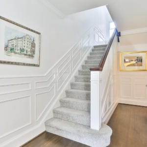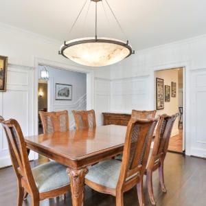 129 Garfield Avenue, Toronto – Situated on a corner lot on one of Moore Park’s most prestigious streets. Entry with solid wood exterior door and beveled glass interior door. Well thought out Centre Hall floor plan makes for a perfect family home with 5 bedrooms and 6 baths. Elegant gas fireplace and large bay window area in the beautiful living room. French doors lead you to the family room addition with pot lights, large windows, wood burning fireplace, built-in bookshelves, and South facing wall of full length windowed hinged doorway to the private terrace. The family room opens to the kitchen with high-end stainless-steel appliances including stacked oven, microwave, and warming drawer. Ample storage and pantry, large island with gas cooktop and bar stool seating. Traditional, spacious dining room with magnificent hanging light fixture, bay windows, and panelled walls.