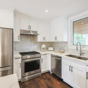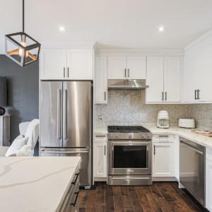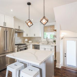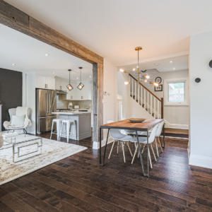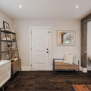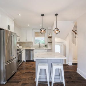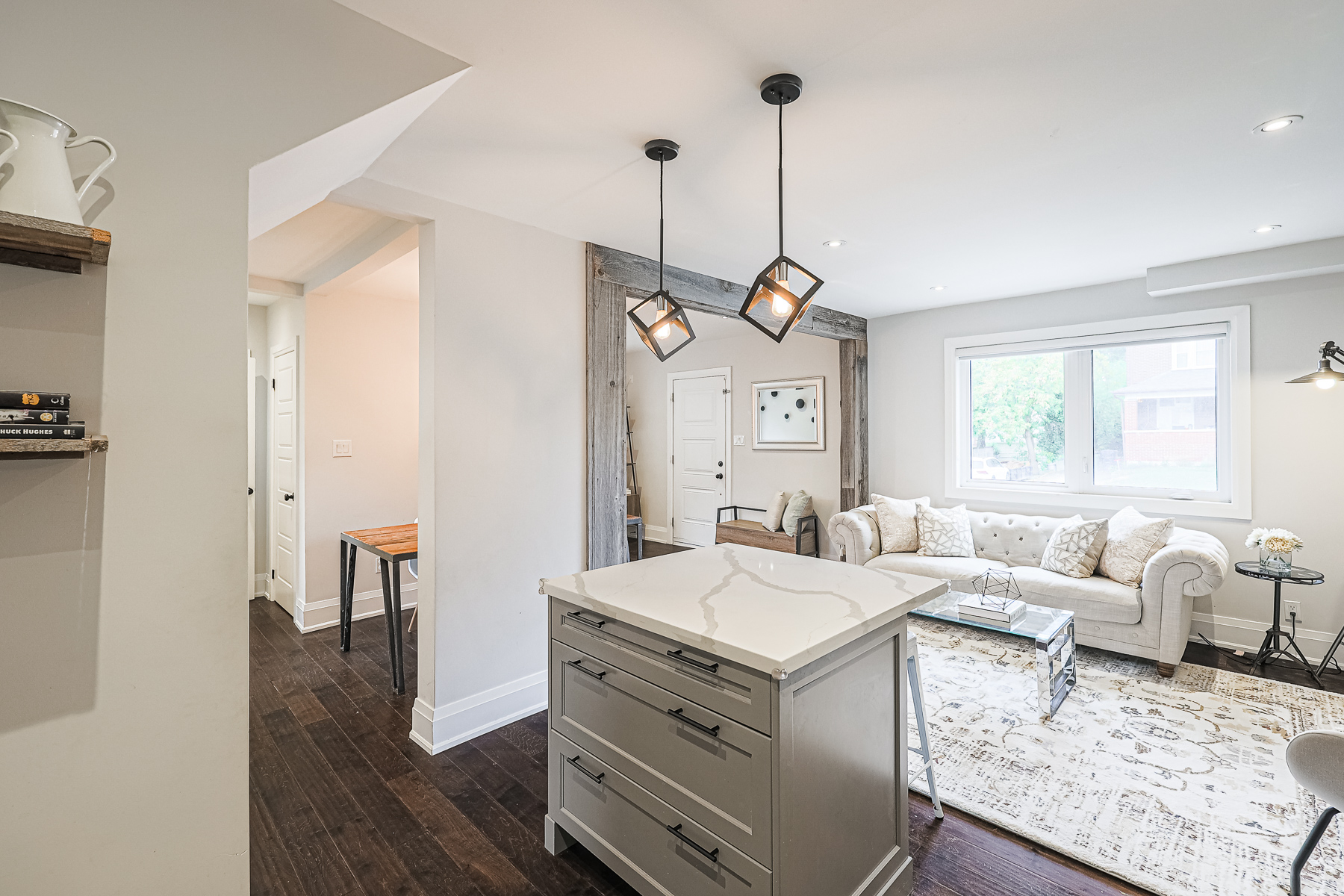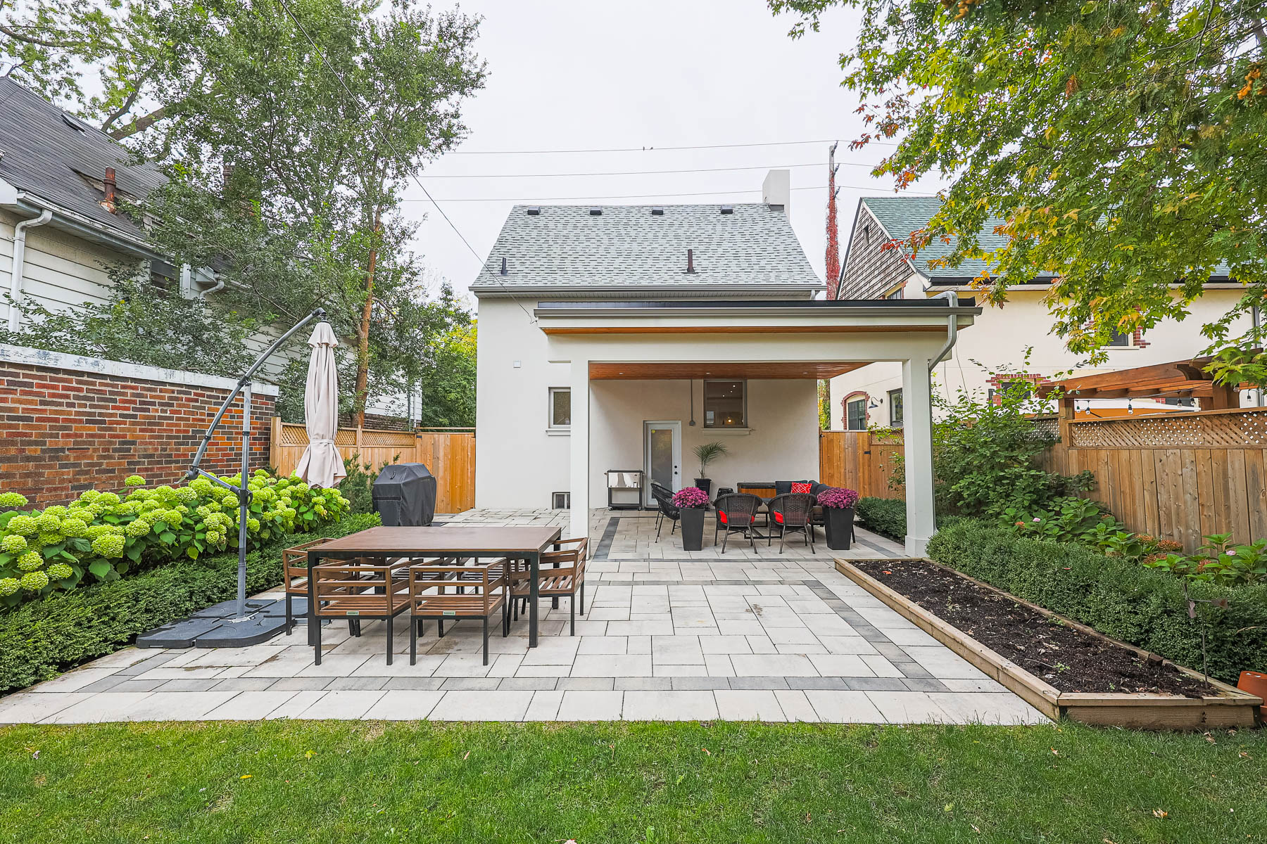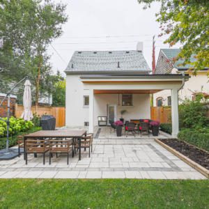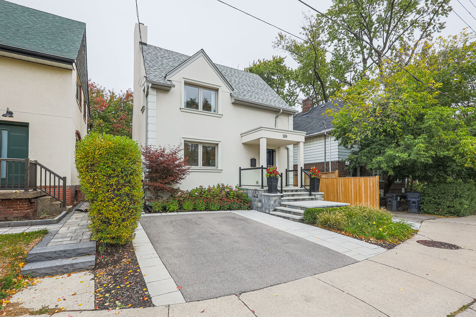 169 Royal York Road – Fantastic, move-in ready 3 bedroom, 3 bathroom detached home on large 35 x 114 lot. Renovated from top to bottom in 2017. Incredible front and back custom hardscaping, professional landscaping, fencing and covered patio that was added in 2019. The open concept main floor has hardwood throughout plus reclaimed wood accents and features a living room with gas fireplace, dining room and kitchen with stainless steel appliances, centre island, quartz counters and marble backsplash. The main floor also boasts a powder room, and the closet is roughed in for a second laundry. Upstairs are 3 bedrooms and 4 piece bathroom. The finished lower level has a separate rear entrance (for income potential) and includes a recreation room, office space (also roughed in for a kitchen) and a 3 piece bath. Absolutely stunning, fully fenced back yard with covered patio and gorgeous manicured gardens – a truly magical place for entertaining. Private drive for 2 cars and comes with a Tesla charger. Just steps to the GO train, TTC, schools, parks, waterfront trails and more.