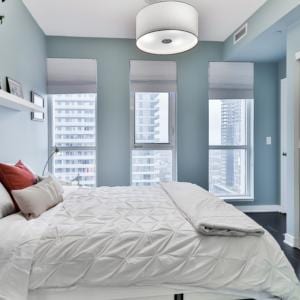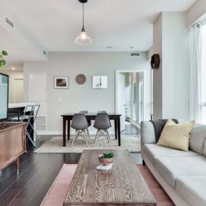 170 Sumach Street, Unit 1902 – This is the one! Style & function come together in this bright, spacious & modern 2 bedroom and 2 bathroom corner unit in hip One Park Place North! Open concept layout with high ceilings; fabulous and sunny southeast exposure; loads of windows; and an open balcony with an AMAZING city view (check out the CN Tower and Lake). Quartz counters, stainless steel appliances, clean-lined cabinetry and a breakfast bar create a chic kitchen. The thoughtfully constructed master bedroom has a double-wide closet, 4 piece washroom and tall windows while the 2nd bedroom has a large closet, 4-piece ensuite and a south view. Other features include: ensuite laundry; a well-designed entryway; a large locker and a perfectly located parking space across from the elevators.