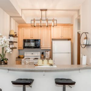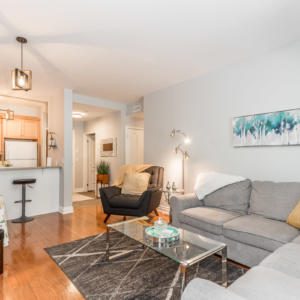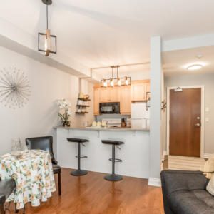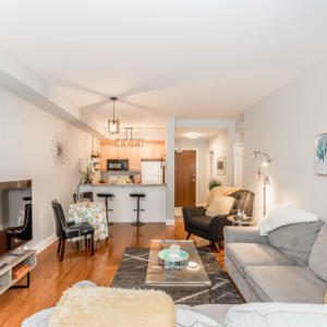 #206, 200 Collier Street – Stunning 1 bed, 1 bath condo unit with parking in the heart of Barrie. Open concept layout with walk-out to terrace from living room. 9′ ceilings, hardwood floors. Well maintained building with mature residents, beautiful grounds, outsize gazebo, party/games room, guest suites, and visitor parking. Short walk to Barrie’s waterfront and just minutes to the downtown core to enjoy shops, restaurants, cafes, bike trails, and festivals. A short drive to Georgian Mall, highway 400. Use of fridge, stove, dishwasher, microwave, washer & dryer.
