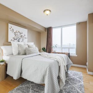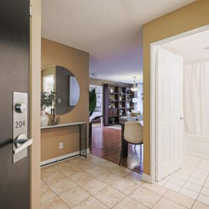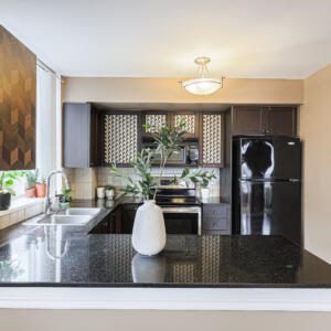 1369 Bloor St W, Unit 204 – Spacious and sunny south-east corner unit with 2 bedrooms, 2 bathrooms and large balcony. Open concept and highly functional layout. The chef’s kitchen features granite counters, double sink, full-sized appliances and peninsula with plenty of counter space. The primary bedroom includes a large closet and full 4-piece bath. This well-maintained building features an outdoor pool, gym, sauna, theatre, party room, library, dog area, bbq area, visitor parking and overnight security.