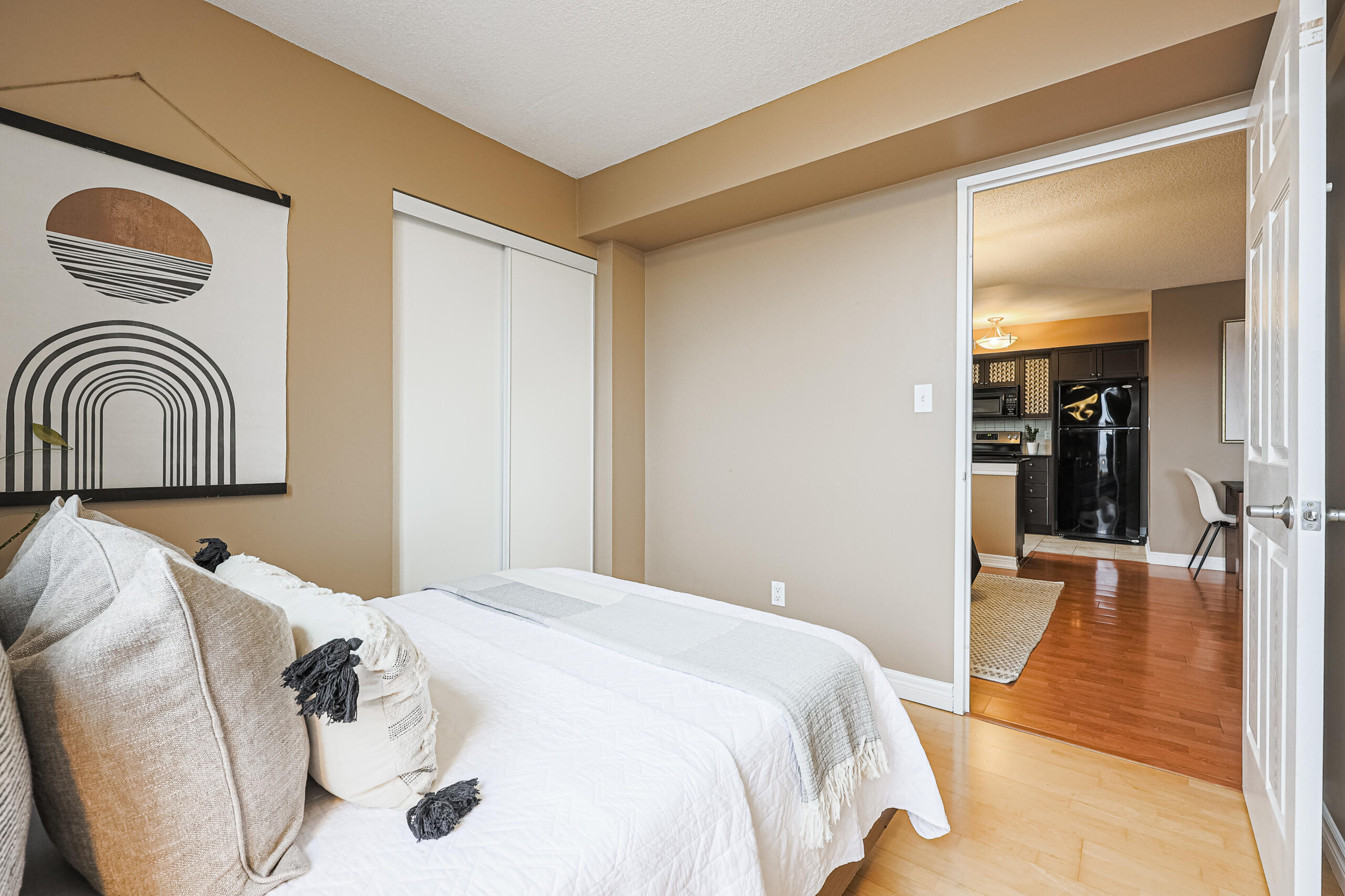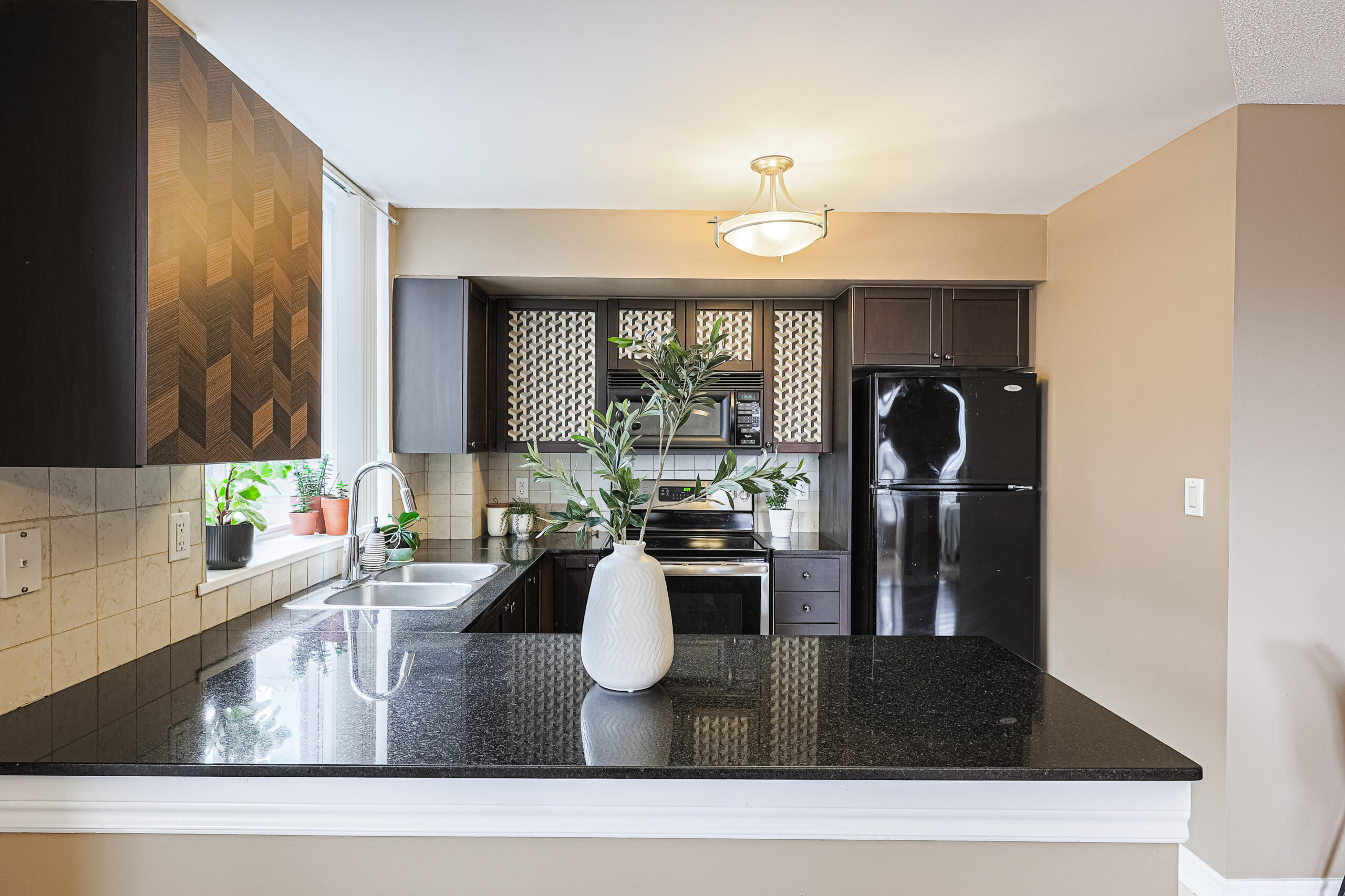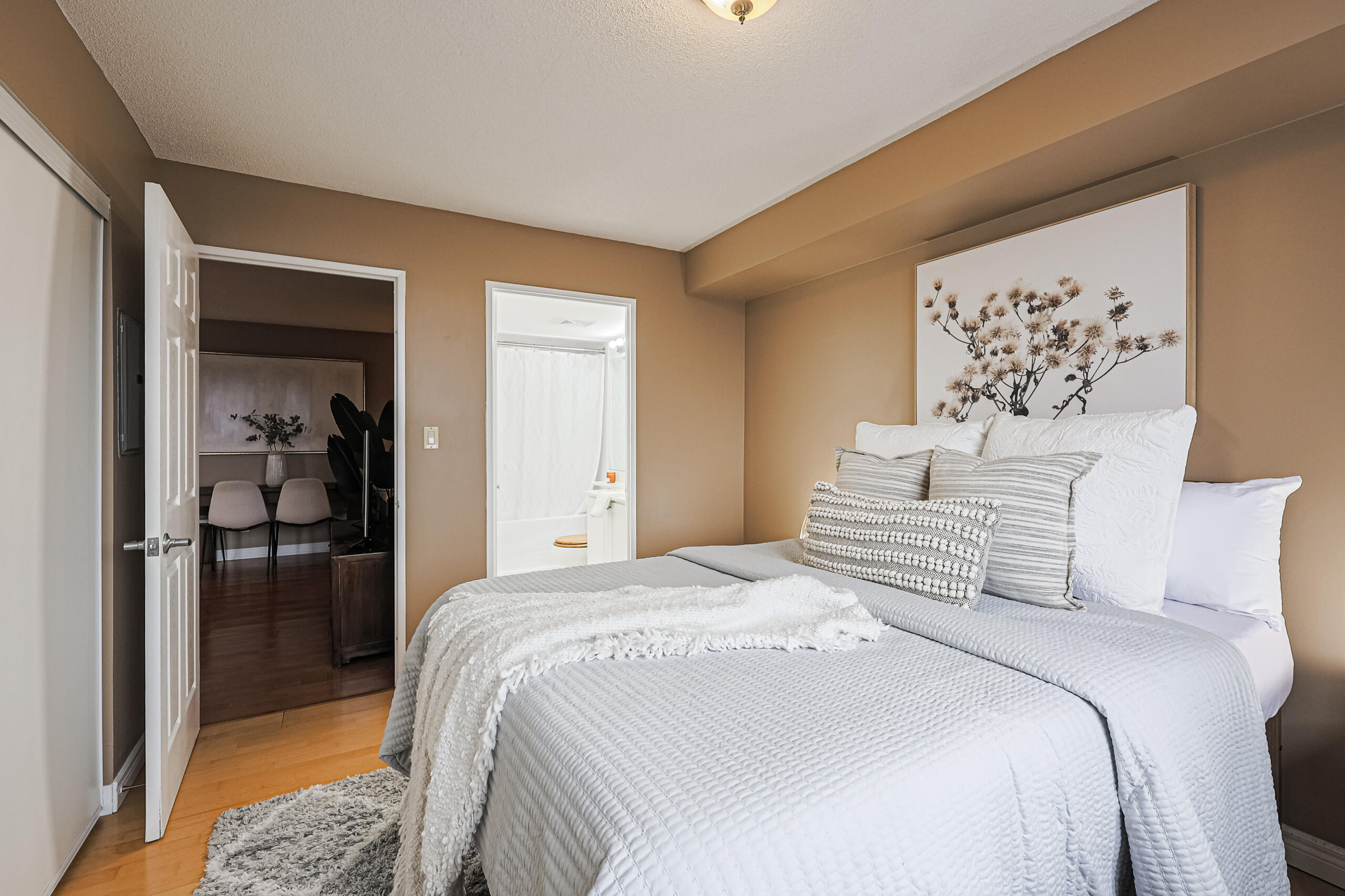 1369 Bloor St W, Unit 204 – Spacious and sunny south-east corner unit with 2 bedrooms, 2 bathrooms and large balcony. Open concept and highly functional layout. The chef’s kitchen features granite counters, double sink, full-sized appliances and peninsula with plenty of counter space. The primary bedroom includes a large closet and full 4-piece bath. This well-maintained building features an outdoor pool, gym, sauna, theatre, party room, library, dog area, bbq area, visitor parking and overnight security.
