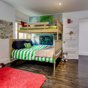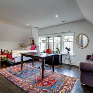The third floor features an open concept space with a skylight overhead that is ideal for an artist’s studio, a home office, or a play area for children. There are also three more bedrooms and a three-piece bathroom.