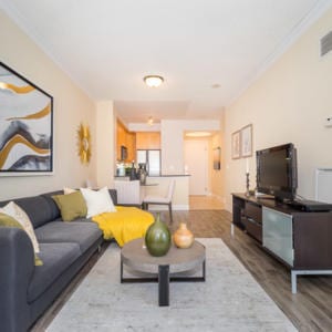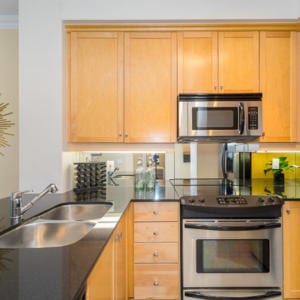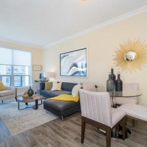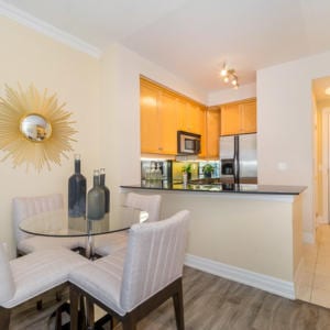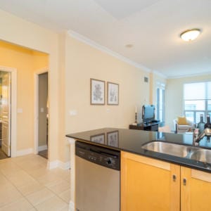 2087 Lakeshore Blvd W, Unit 1606 – Stunning 1 bed, 1 bath unit in the prestigious Waterford on the Lakefront. Bright and spacious with 9 foot ceilings and premium South West Exposure. The updated kitchen with stainless steel appliances, granite counter and mirrored backsplash overlooks the large living and dining room area. Relax on the balcony to enjoy tranquil lake views or bbq for guests.