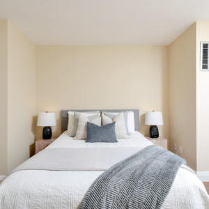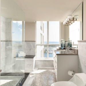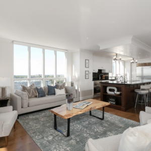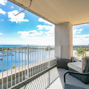 2287 Lake Shore Blvd W, Unit 1208 – Unbelievable and unobstructed views at the resort-like Grand Harbour. One of the largest 2 bedrooms units in the building, with luxurious finishes, tons of light, and fantastic layout. Gourmet kitchen, high-end appliances, and a spectacular over-sized centre island that is perfect for gathering around. The primary bedroom features a seating area, walk-in closet with custom built-ins, plus a 3 piece ensuite bathroom equipped with an extra-large glass shower – not to mention the forever views of the lake and marina! The second bedroom also has an ensuite bathroom and unobstructed west views. It’s a quick walk to the Humber Bay Park Trail, with stores and all conveniences nearby.