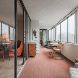 2350 Bridletown Circle, Unit 306 – Luxurious living in Tridel’s sought-after Skygarden. This spacious unit features a combined living and dining room, a large eat-in kitchen, 2 large bedrooms, and a family room that could easily be converted to a 3rd bedroom. The South-facing solarium brings in plenty of natural light and is accessible from both bedrooms, living room, and family room. The huge primary bedroom has a walk-in closet, 4-piece ensuite and a sitting area. Great-sized 2nd bedroom, laundry room with storage. The unit is conveniently located next to the elevator and comes with two parking spaces and a large locker.