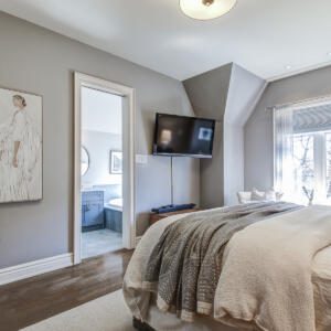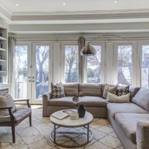 The finished lower level is equally impressive with 10 foot ceilings and radiant heated floors. The spacious recreation room includes custom built-ins and opens to the lush backyard via an above-grade walk-out. Adding to the versatility of this level is a large bedroom and beautiful 3-piece bathroom. With a private side entrance and direct garage access, the lower offers the perfect setup for in-laws, guests, or a private home office. For added ease, the laundry room includes a chute from the second floor. Move-in ready and meticulously maintained, and just steps to Blythwood Public School and nearby parks, 249 Sheldrake is the complete package – elegant, functional, and perfectly located in one of the city’s most desirable neighbourhoods.