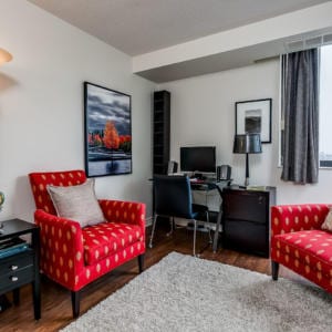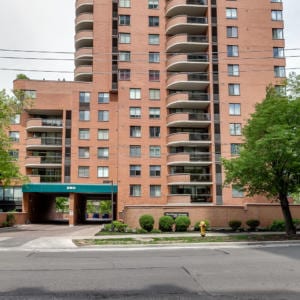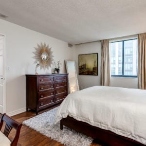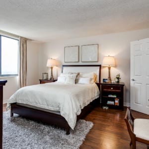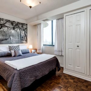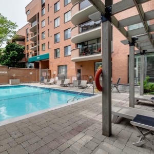 Stunning designer suite at The Village Terraces with approximately 1,420 sq. ft. Parquet floors throughout, closets and storage galore, and an oversized terrace with storage. Stainless steel appliances, granite counters and room for table in the kitchen. Open concept living and dining room layout is ideal for entertaining and is showered with natural light. 3 Real bedrooms, renovated bathroom, parking and locker. Building features a party room, gym, concierge, visitor parking, and an outdoor pool.