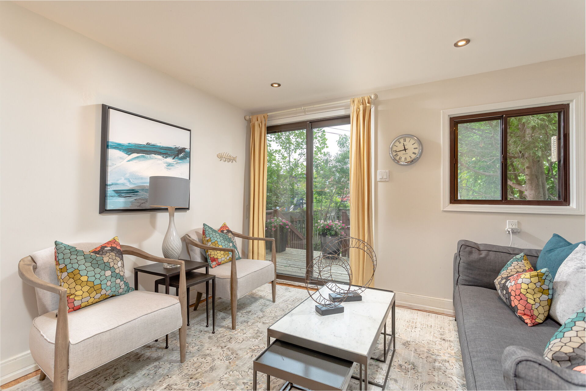29 Kelvin Avenue – Fantastic, detached three bedroom Victorian home in a unique residential pocket right off the Danforth! Spacious living room and dining room with extra tall ceilings. The kitchen and combined family room feature a centre island, cork floors, stainless steel appliances, and walks out to the beautiful back yard with deck. Three great sized bedrooms on the second floor along with updated family bath. Main floor powder and laundry, and laneway parking for 2 cars. Many young families and a vibrant residents association, and just steps to the subway & GO train. All the conveniences of the Danforth are right at your doorstep!