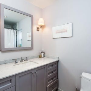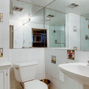 – Total gut of upstairs bathroom, including new bathtub, tiles, marble counter, toilet