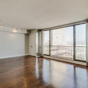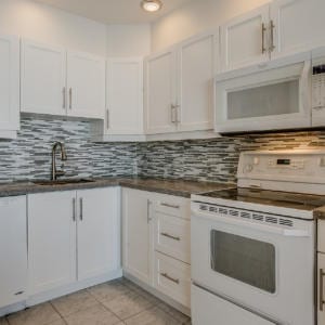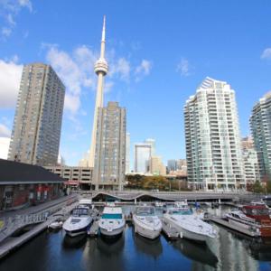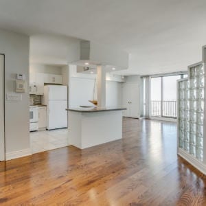 33 Harbour Square, Unit 1226 – Luxury downtown condo with 1,140 square feet of living space. This one bedroom plus den has an excellent layout and exquisite south view of Lake Ontario from the living room. It features gleaming hardwood floors throughout the unit and a renovated kitchen with backsplash and breakfast bar.