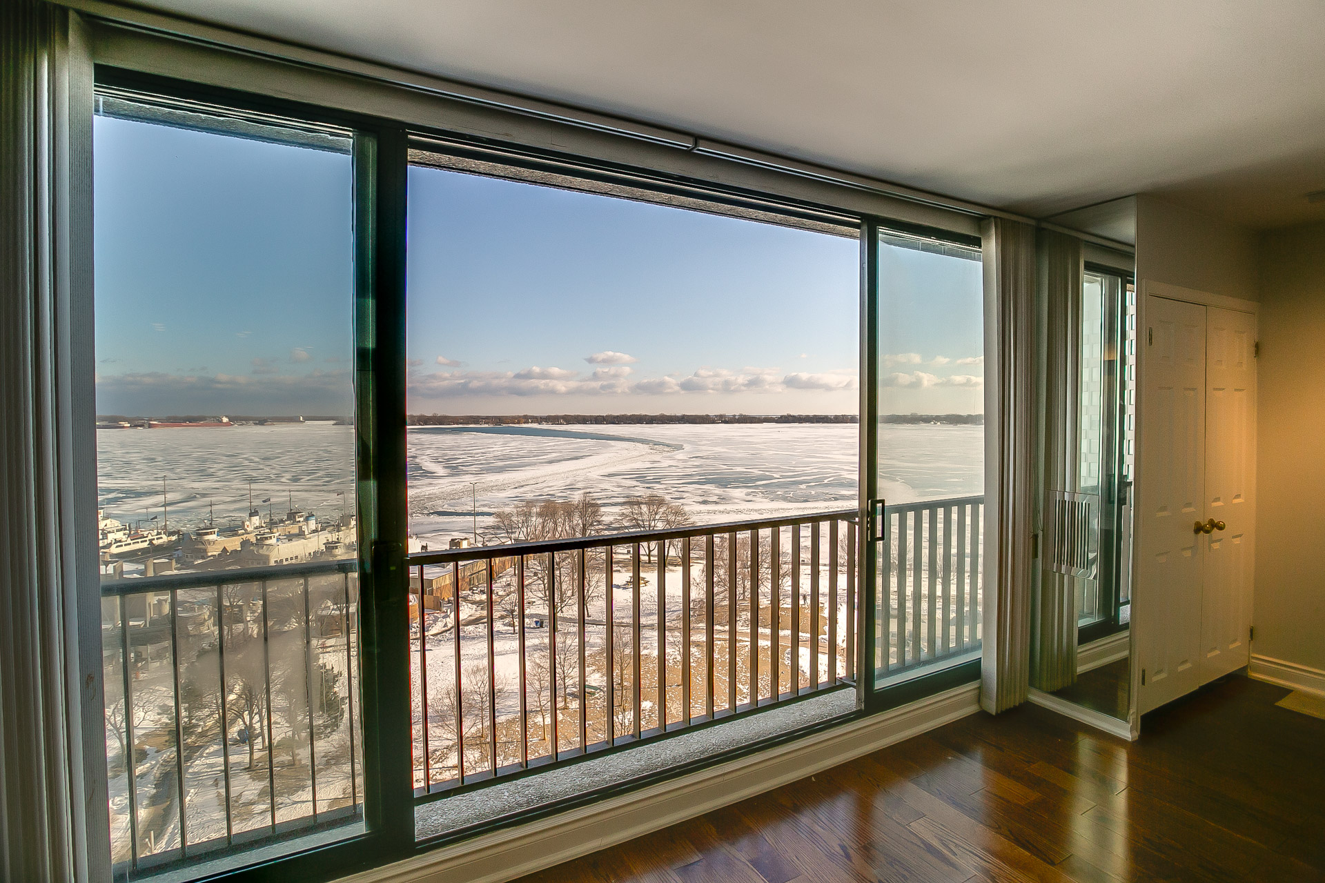 33 Harbour Square, Unit 1226 – Luxury downtown condo with 1,140 square feet of living space. This one bedroom plus den has an excellent layout and exquisite south view of Lake Ontario from the living room. It features gleaming hardwood floors throughout the unit and a renovated kitchen with backsplash and breakfast bar.