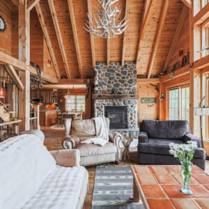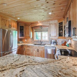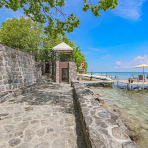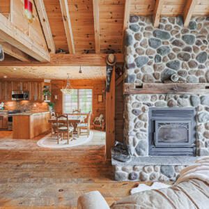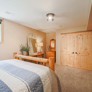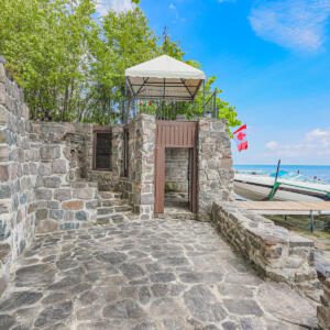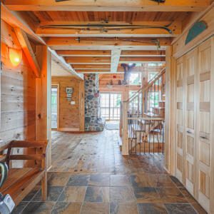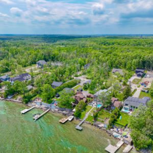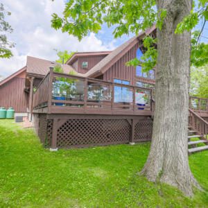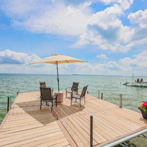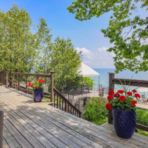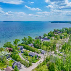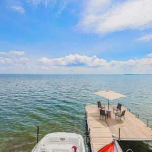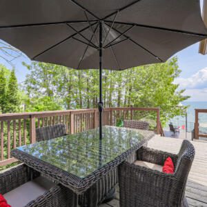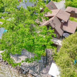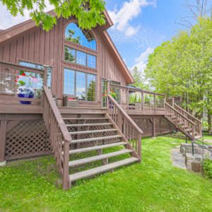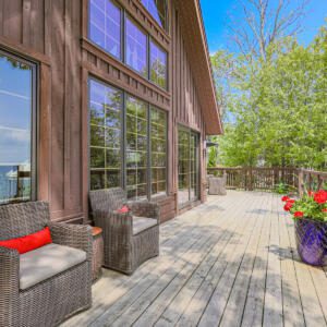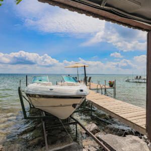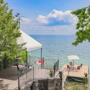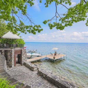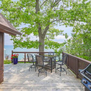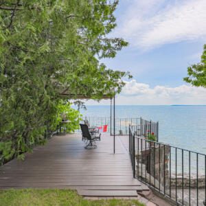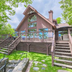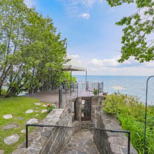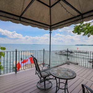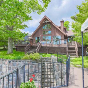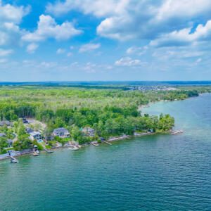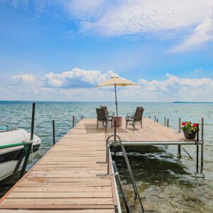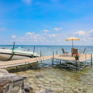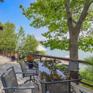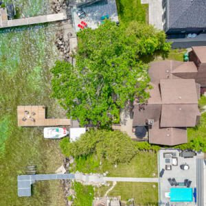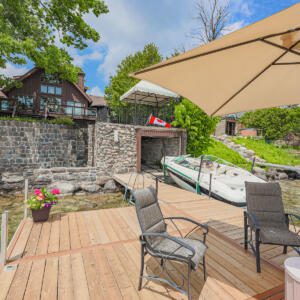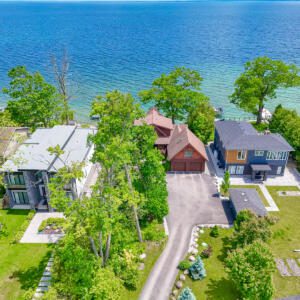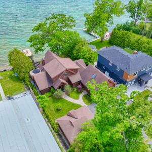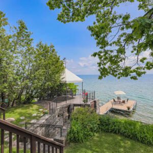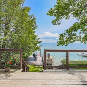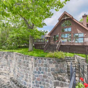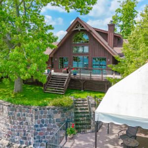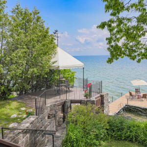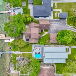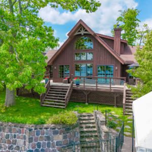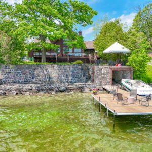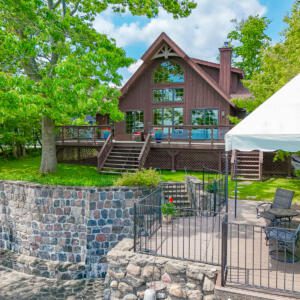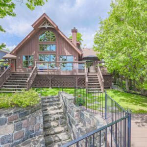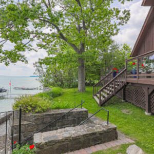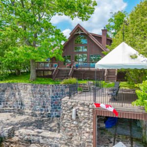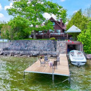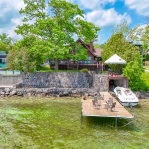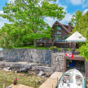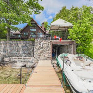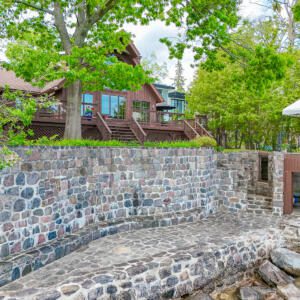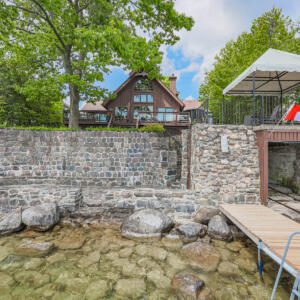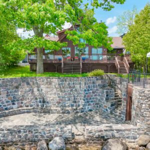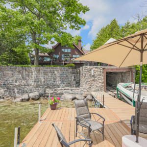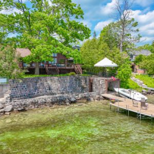 Gaze out across the lake and catch sight of both Fox and Snake Islands to the south. The waterfront is truly one-of-a-kind, featuring a beautifully crafted stone wall and patio that stretches across the entire frontage, creating an inviting space for entertaining, relaxing, or enjoying direct lake access – this is lakeside living at its finest.