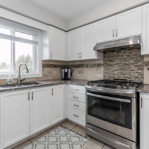 4 Hubbert Crescent – Stunning, 3 + 1 bedroom home backing onto the ravine. Immaculately maintained and situated in the highly desired, family neighbourhood of Holly. Excellent main floor plan with spacious foyer & principal rooms. The family room features a gas fireplace. The eat-in kitchen has stainless steel appliances, gas stove, and walks out to the deck. Three bedrooms on the main including huge primary bedroom with walk-in closet and 4pc ensuite. Income potential in the lower level with recently renovated 1 bedroom nanny suite with walk-out. 2-car garage, closet ot highway 400, schools, shops, parks, and so much more.