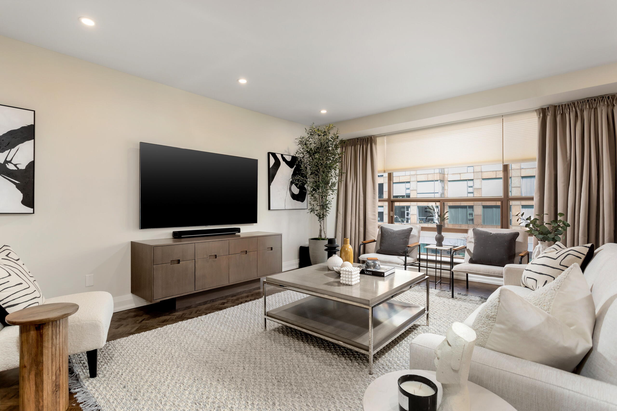 4 Lowther Avenue, Unit 403 – Completely renovated back to the studs & thoughtfully re-imagined into a contemporary masterpiece with no expenses spared. This unit at the highly sought-after boutique building Four Lowther offers a sophisticated space that is modern yet warm, and is fully equipped with top-of-the-line finishes. The open concept chef’s kitchen features high end stainless steel appliances including beverage fridge, sleek custom cabinetry & an oversized centre island with quartz counters. The spacious living room has a beautiful stone-clad fireplace that is flanked by built-in shelving on both sides, and large east facing windows. The separate den/office offers brilliant natural light through the floor-to-ceiling windows and can be closed off for privacy with its sliding frosted glass door. The huge primary bedroom boasts a large walk-in closet with custom organizers, bespoke millwork that offers unbelievable storage, and spa-inspired five-piece ensuite bath. Foyer with powder room, closet, large laundry & ensuite storage room, PLUS another storage unit in the building. One of the best concierges in the city! Valet parking. Steps To Yorkville, restaurants, shops, Whole Foods, TTC & the Mink Mile.