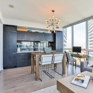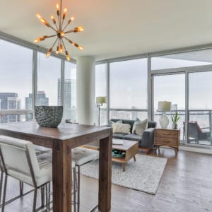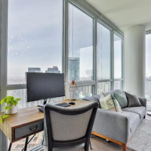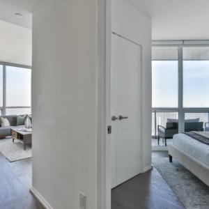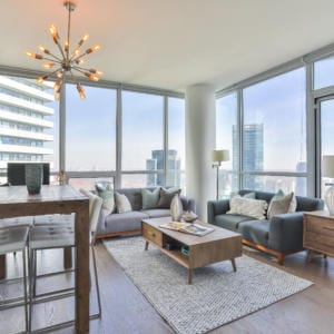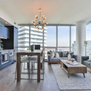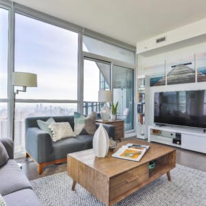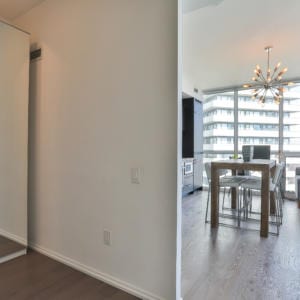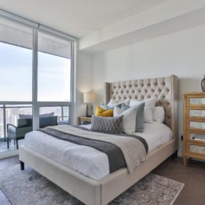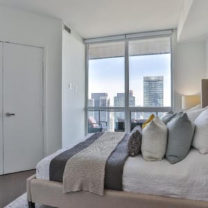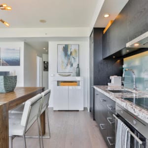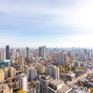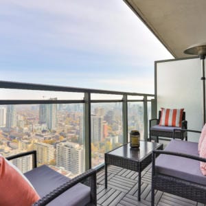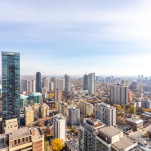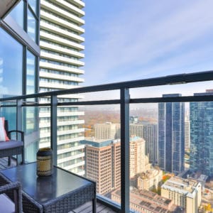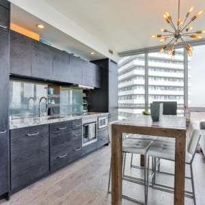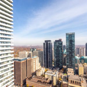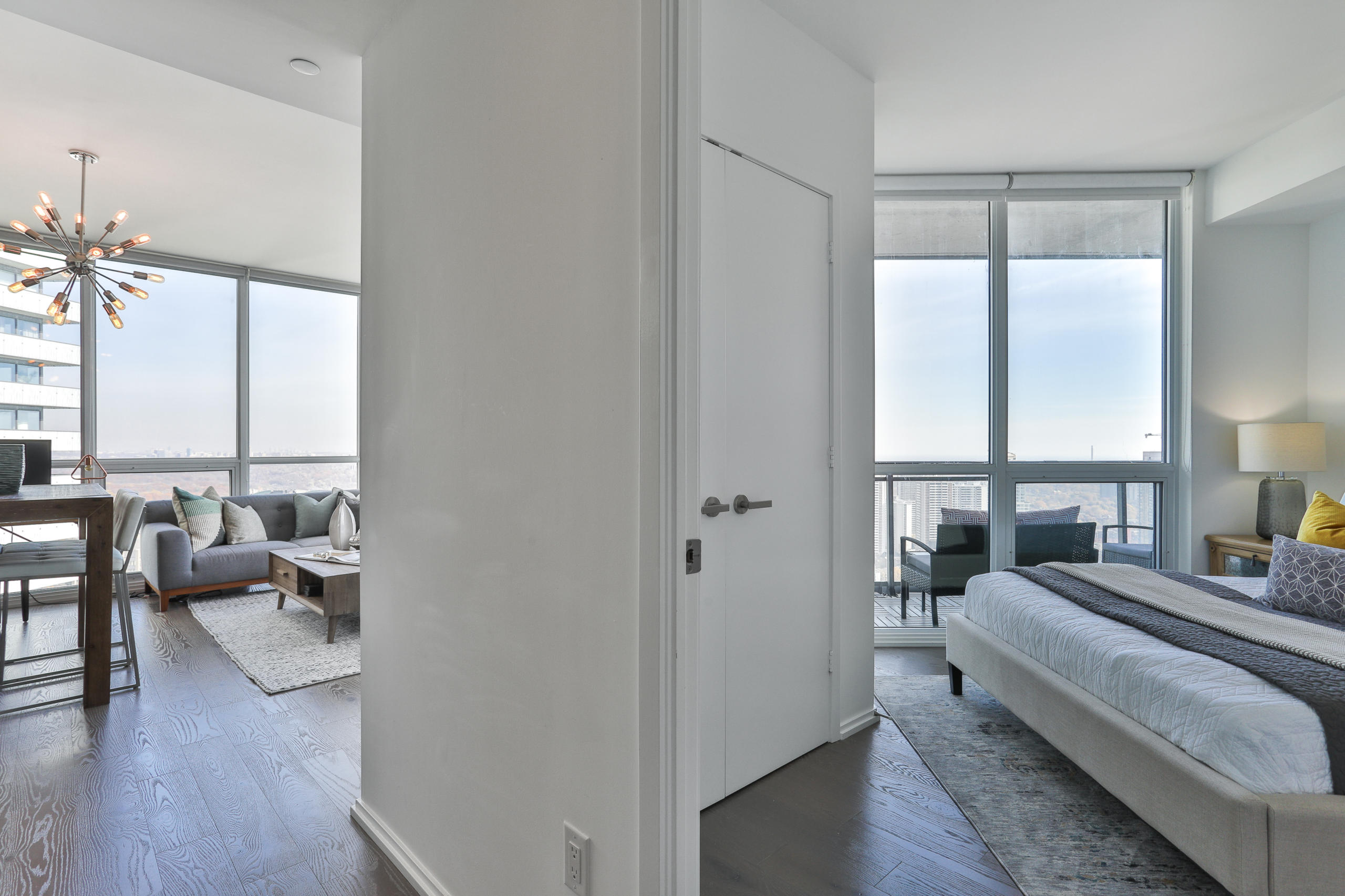 What a view!! Floor to ceiling windows in this 45th floor open concept unit. Master bedroom with 4pc ensuite, and a spacious open concept den area which would make a great home office. Excellent kitchen and living room layout has floor to ceiling windows and walks out to the balcony where you can see the spectacular city views!! Modern kitchen with granite counter, hidden laundry and built-in appliances. Upscale Yorkville living with residents only Chaz Club on 36th & 37th floor, pet spa, billards, theatre room, fitness centre, board room, concierge and within walking distance to everything you need.