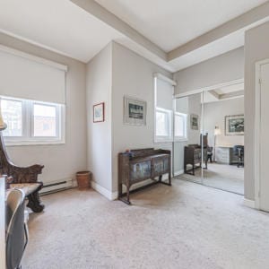 56 St Nicholas Street – A charming two-level brownstone condo in the heart of downtown! This gem is approximately 1100 square feet, and situated on an enticing & quiet little street just one block from Yonge Street. Large living and dining space features a fireplace and sliding doors to the balcony. The crisp and clean kitchen feature a breakfast nook area as well as ensuite laundry. Upstairs has a skylight, spacious master bedroom with it’s own private balcony, second bedroom with a murphy bed, and a full bath with stand-alone shower and separate tub. This unit has underground parking included. Just steps to Yorkville, Queen’s Park, tons of restaurants, cafe’s, shops and all the amenities this area has to offer.