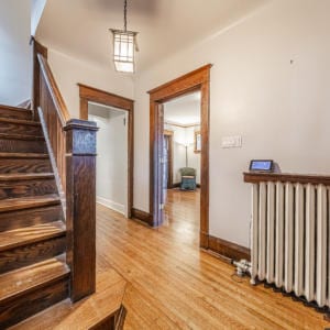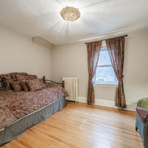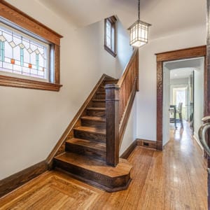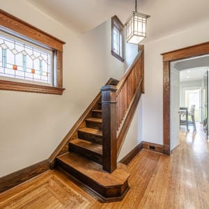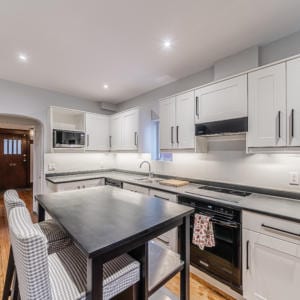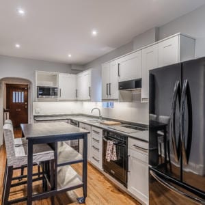 58 Chester Hill Road – Located on one of Playter Estate’s most sought-after streets, this 3 bedroom detached home provides amazing comfort, style and function. Thoughtfully renovated, the home has a striking kitchen with new white cabinetry, black Kitchen Aid appliances and a large island with seating. A gorgeous new bathroom with sleek cabinetry, stone counters, beautiful fixtures, heated floors and towel warmer is located on the 2nd floor. Spacious bedrooms are complemented by large closets including his & hers closets in the second bedroom and beautiful built-ins in the principal bedroom. A front foyer with built in cabinetry, a mudroom off the kitchen and a beautiful Arts and Crafts built-in coat rack in the front hallway provide ample space for boots, shoes and coats. A solarium located at the front of the house could be a fabulous home office or a great nook for reading or relaxing. A wood burning fireplace along with beautiful stained glass windows, hardwood flooring and wood details add character and charm to this special home. Professionally landscaped yards provide privacy and function, with built-in irrigation systems. A partially finished basement has a front-loading washer and dryer; a 4-piece bathroom; and storage.