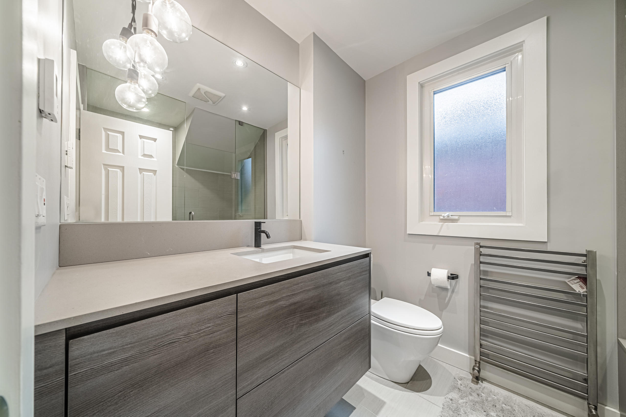 58 Chester Hill Road – Located on one of Playter Estate’s most sought-after streets, this 3 bedroom detached home provides amazing comfort, style and function. Thoughtfully renovated, the home has a striking kitchen with new white cabinetry, black Kitchen Aid appliances and a large island with seating. A gorgeous new bathroom with sleek cabinetry, stone counters, beautiful fixtures, heated floors and towel warmer is located on the 2nd floor. Spacious bedrooms are complemented by large closets including his & hers closets in the second bedroom and beautiful built-ins in the principal bedroom. A front foyer with built in cabinetry, a mudroom off the kitchen and a beautiful Arts and Crafts built-in coat rack in the front hallway provide ample space for boots, shoes and coats. A solarium located at the front of the house could be a fabulous home office or a great nook for reading or relaxing. A wood burning fireplace along with beautiful stained glass windows, hardwood flooring and wood details add character and charm to this special home. Professionally landscaped yards provide privacy and function, with built-in irrigation systems. A partially finished basement has a front-loading washer and dryer; a 4-piece bathroom; and storage.