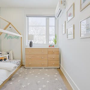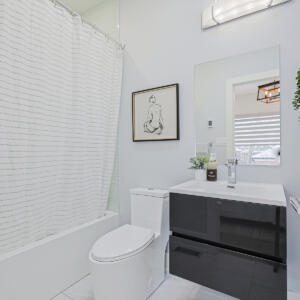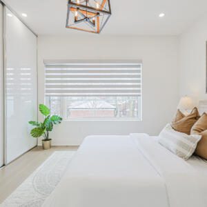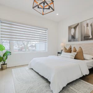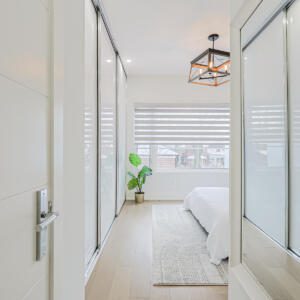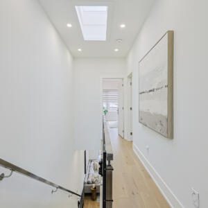The upper level features three spacious bedrooms, including a primary bedroom with a three-piece ensuite bathroom complete with a skylight & heated floors. Custom closets by Closets by Design have been installed in the primary bedroom, nursery, main floor entrance, and basement, offering seamless organization and elevated design. Automatic Hunter Douglas blinds add comfort and convenience.
