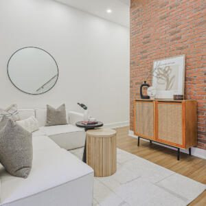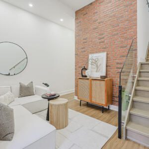 The basement includes a walk-out to the backyard and showcases custom brick wall paneling, creating a warm and refined space. Access to the rare built-in garage provides exceptional everyday convenience.