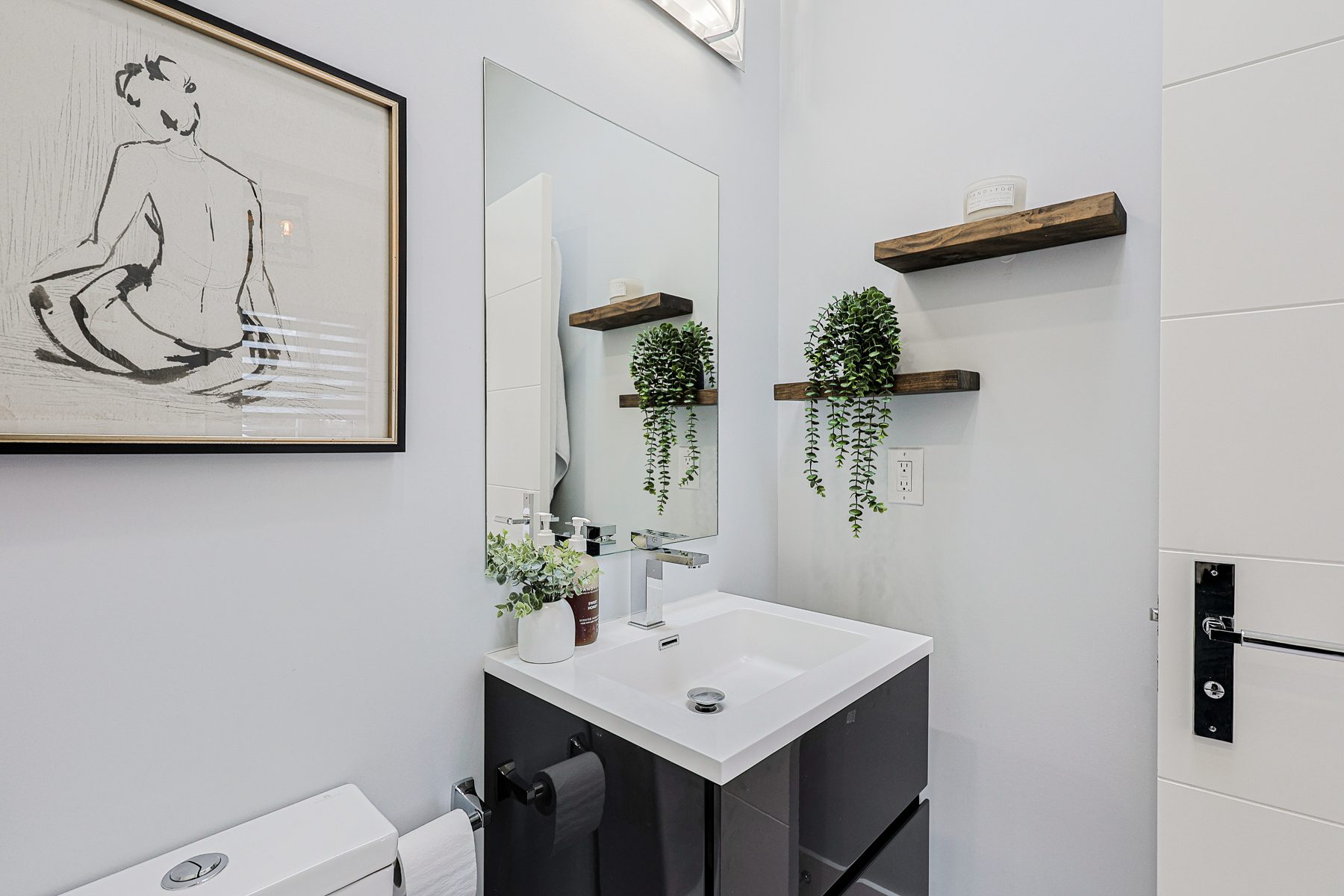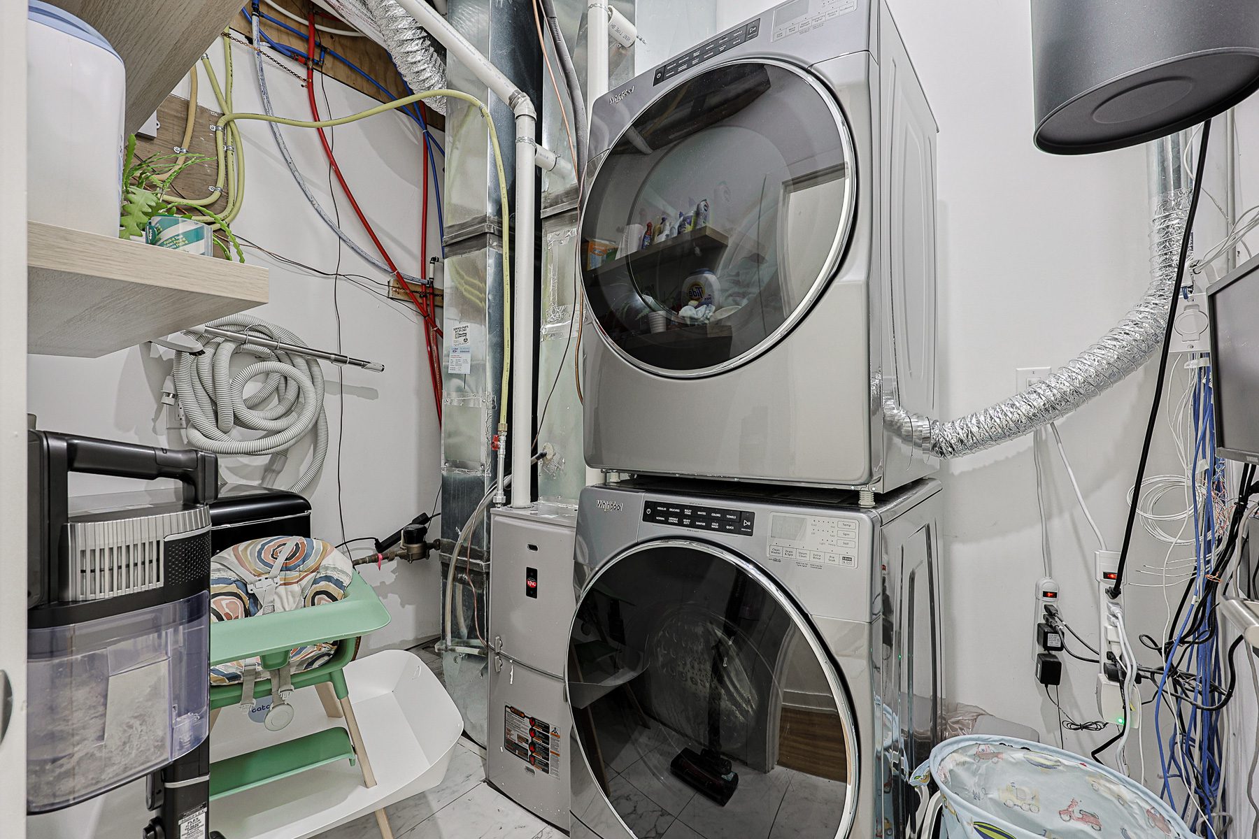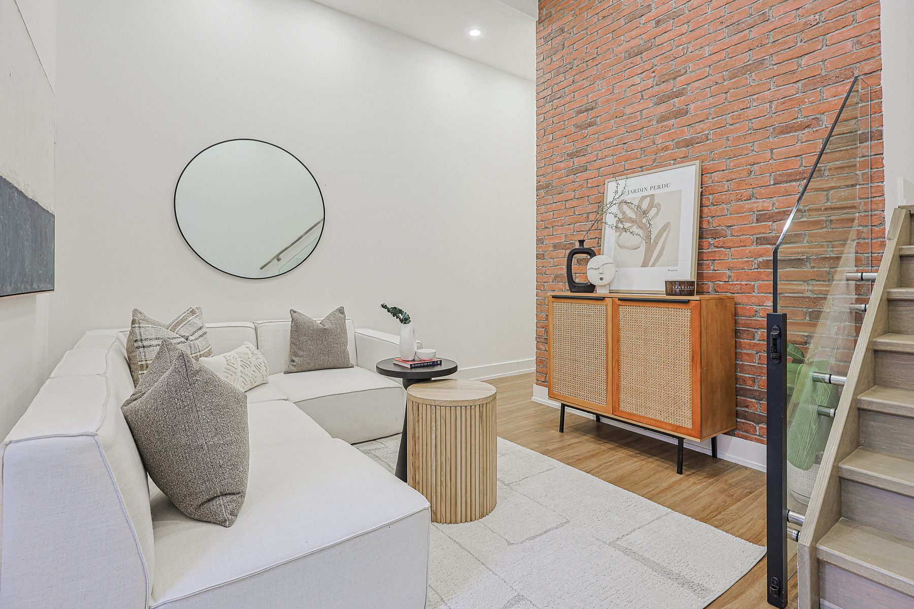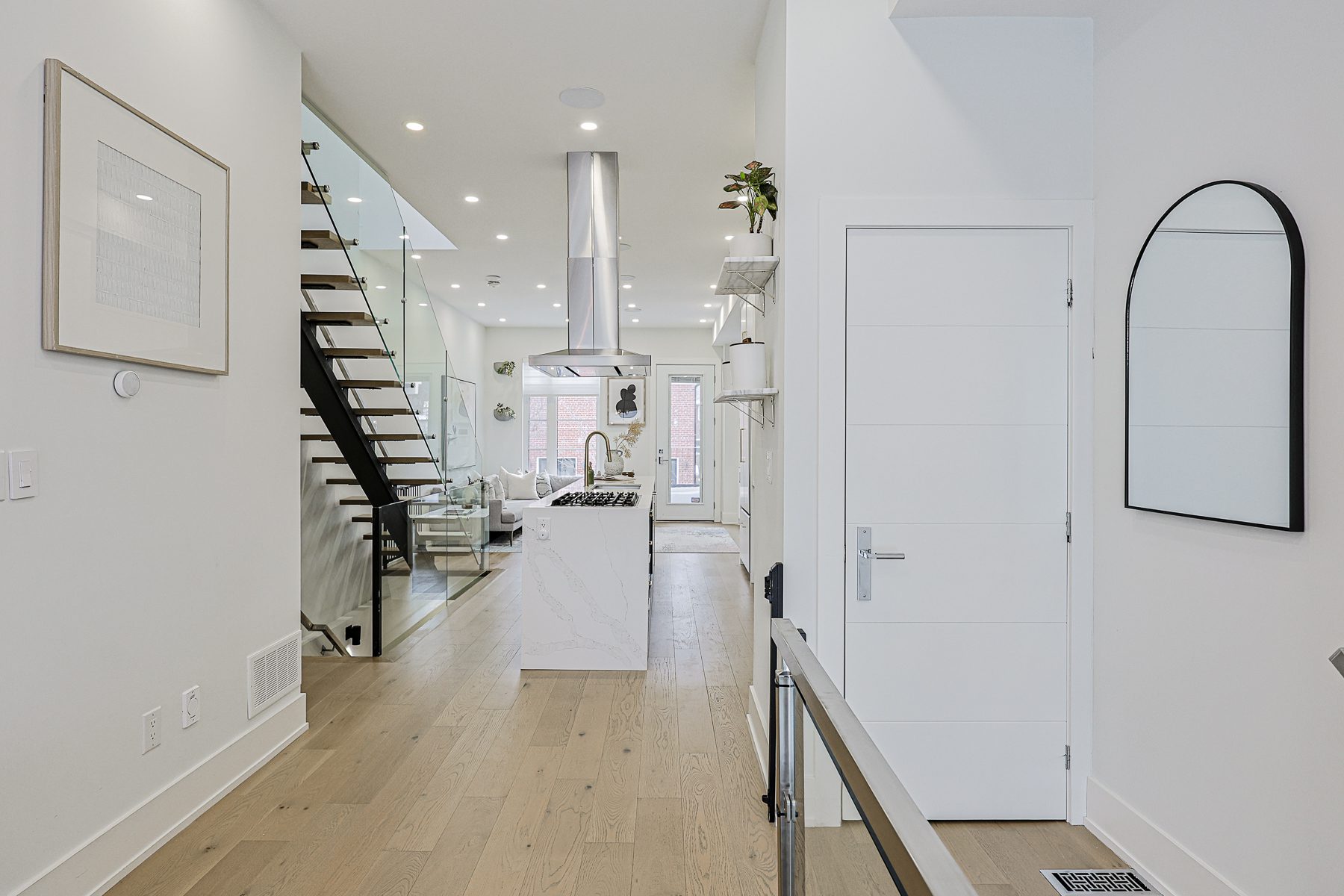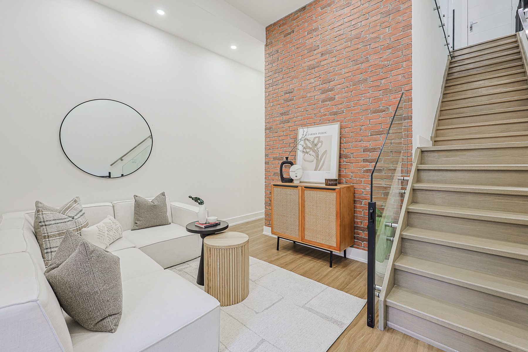 The basement includes a walk-out to the backyard and showcases custom brick wall paneling, creating a warm and refined space. Access to the rare built-in garage provides exceptional everyday convenience.