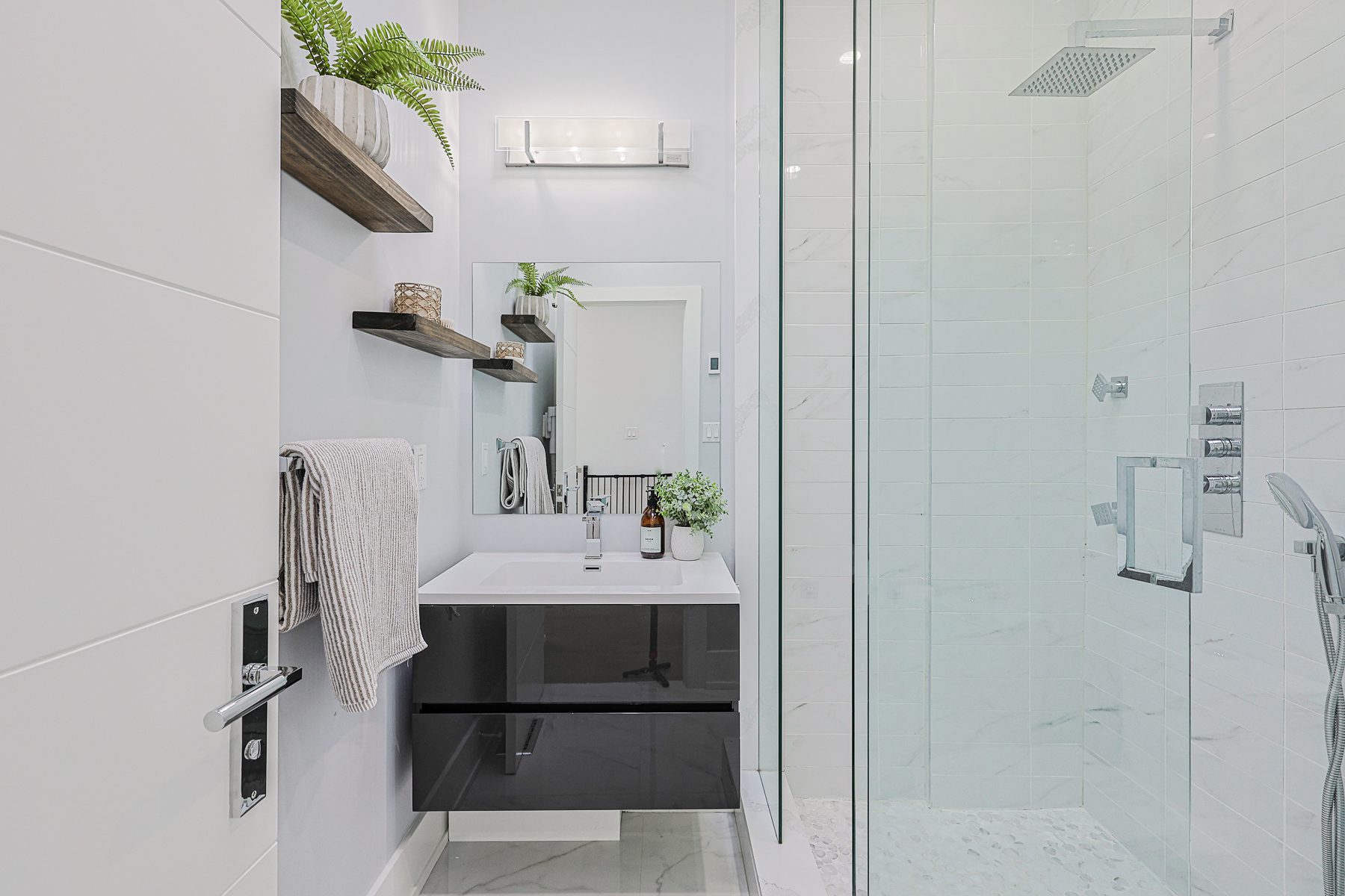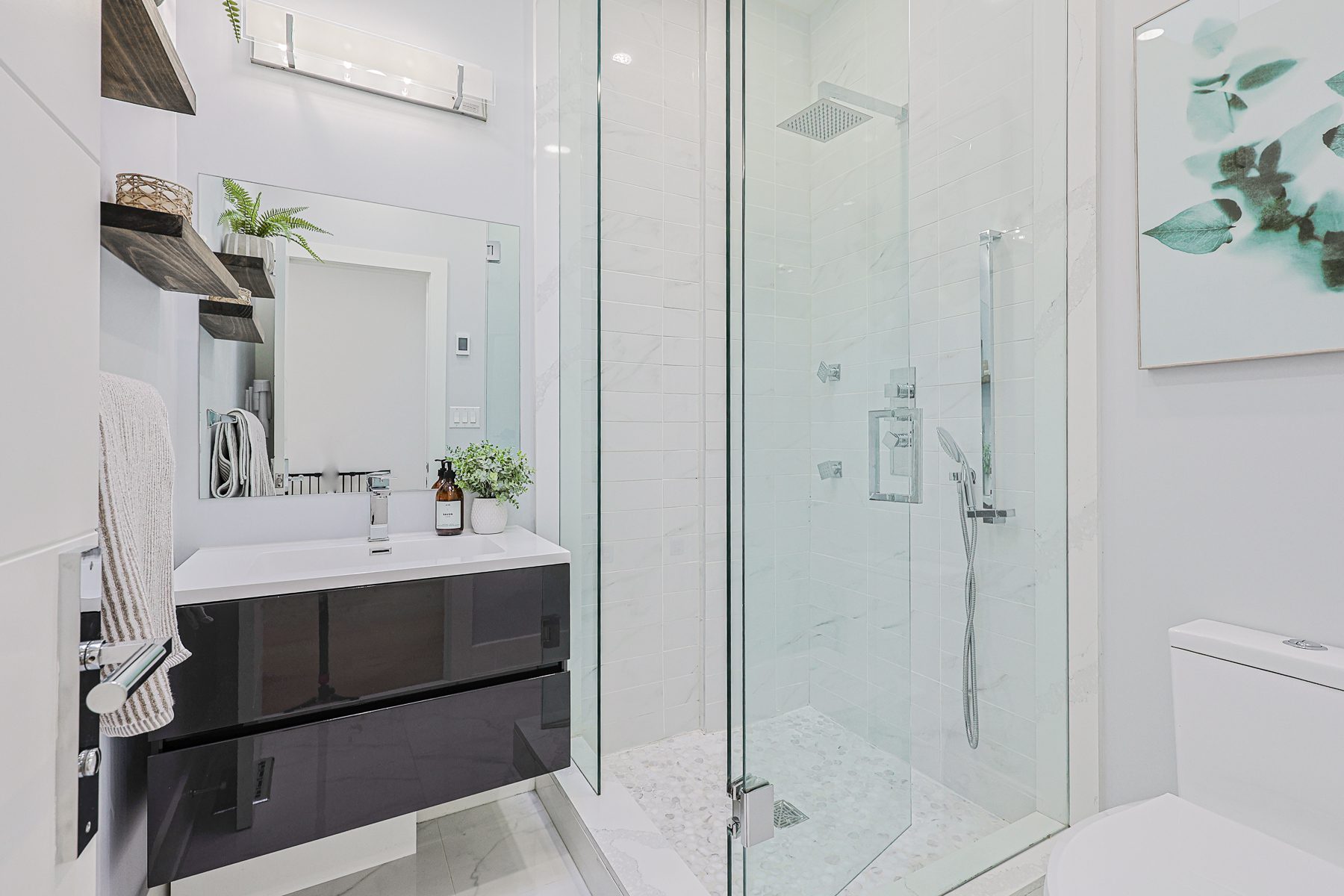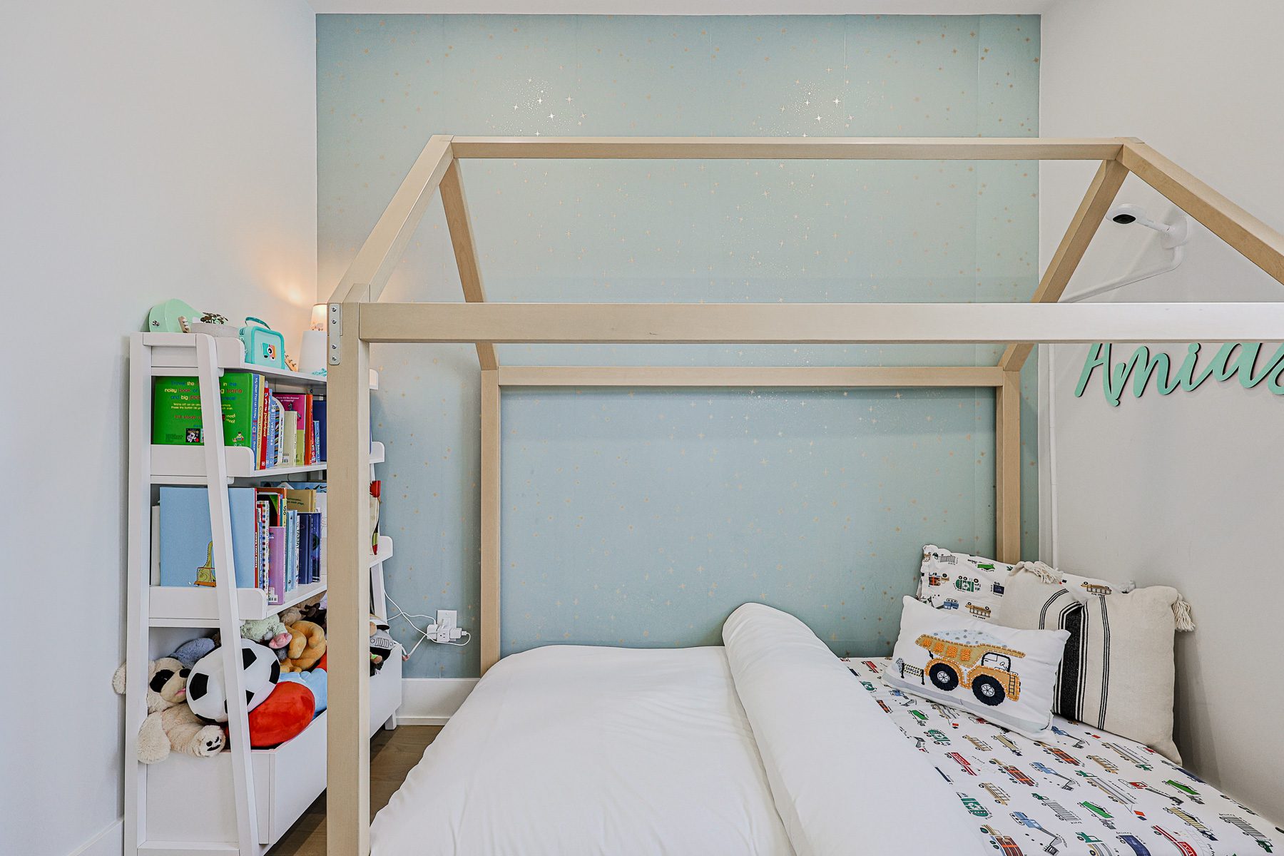 The upper level features three spacious bedrooms, including a primary bedroom with a three-piece ensuite bathroom complete with a skylight & heated floors. Custom closets by Closets by Design have been installed in the primary bedroom, nursery, main floor entrance, and basement, offering seamless organization and elevated design. Automatic Hunter Douglas blinds add comfort and convenience.