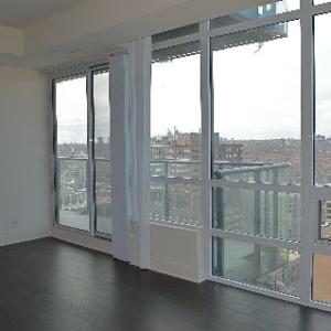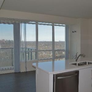 #2603, 825 Church Street – Open concept layout with 682 sq ft + balcony. Floor-to-ceiling windows, hardwood flooring throughout, 9 foot ceilings, large balcony and separate den. The kitchen features six stainless steel Kitchen Aid appliances, granite counters, integrated microwave and the breakfast bar that is perfect for entertaining. Ensuite washer and dryer. Oversized master bedroom with large walk-in closet and stunning bathroom with marble vanity and soaker tub.