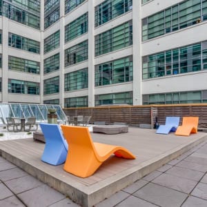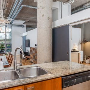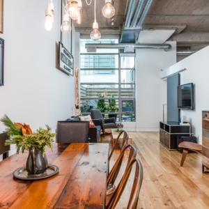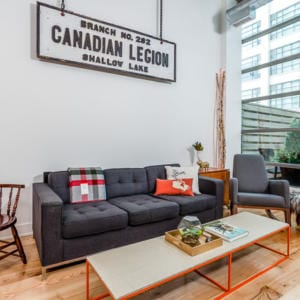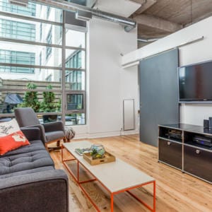 637 Lake Shore Blvd West, Unit 230 – Spectacular 2 bed, 2 bath unit in the iconic Tip Top Lofts with soaring 13′ ceilings, hardwood floors and a wall of windows that offers plenty of natural light. The stylish kitchen features granite counters and stainless steel appliances. The large master bedroom boasts a sitting area, double closet and four-piece ensuite. The private courtyard terrace is great for entertaining and has a gas barbecue hook-up. The incredible amenities include a gym and party room and they have been recently renovated. There are low maintenance fees in the building. The building is in a fantastic location, just steps to the waterfront, walking and biking trails, dog park, TTC streetcar, Billy Bishop airport and more. Includes underground parking with bike storage and separate storage locker.