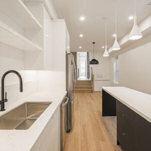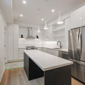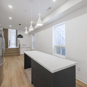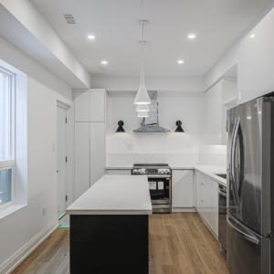 646 Queen Street West, Upper – Absolutely stunning and newly renovated, this bright and stylish 2-storey unit in the heart of trendy Queen West is ready for its first-ever residents! The spacious eat-in kitchen boasts a sleek centre island, stainless steel appliances, a built-in pantry, and a dedicated dining area—perfect for entertaining. The airy living room is bathed in natural light and features a chic accent wall, while a versatile bonus room on the main floor offers endless possibilities as a home office, studio, or even a third bedroom.