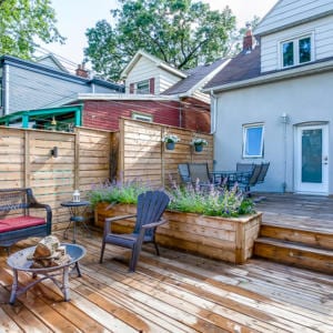 679 Willard Avenue, Toronto – Completely renovated from top to bottom! Open concept detached home close to trendy Bloor West Village and Junction. Beautiful custom kitchen with breakfast bar, Quartz counters, and stainless steel appliances opens to large dining area with walkout to private deep back yard garden. Professionally designed tiered deck with accent lighting and separate entertaining areas with bbq gas line. The renovated lower level with spacious recreation room and office area. Roughed in plumbing for additional bathroom. Upstairs is the bright master bedroom with built in wall to wall closet. Renovated bathroom with custom shower and tons of built in storage.