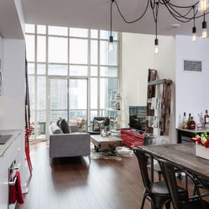 5 Hanna Avenue, Unit 733 is a luxurious 2-storey loft in boutique building in Liberty Village. This spacious unit on a high floor features unobstructed East views of City & Lake soaring 17’ floor-to-ceiling windows. Incredible upgrades include Euro-style kitchen cabinets, quartz counters and ceramic backsplash. Custom engineered hardwood floors on both levels, floating wooden staircase and custom floor-to-ceiling blinds.