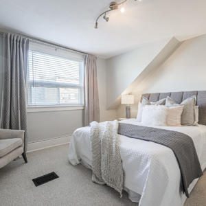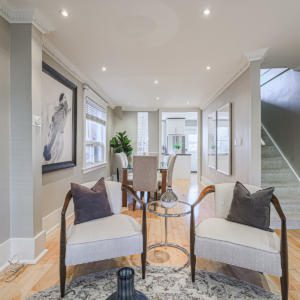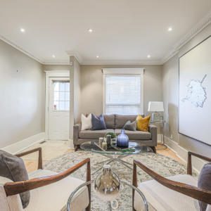82 Petman Avenue – Fantastic, detached 3 bedroom family home in Davisville Village & Maurice Cody school district. The open concept main floor has hardwood, crown molding and pot lights throughout, as well as large windows for natural light. Beautifully renovated kitchen features dark countertops, stainless steel appliances and a centre island. Walk out the kitchen to the back deck and spacious back yard. Three bright bedrooms upstairs as well as the renovated full bathroom.
