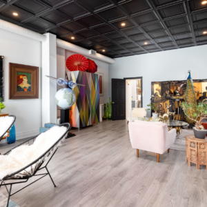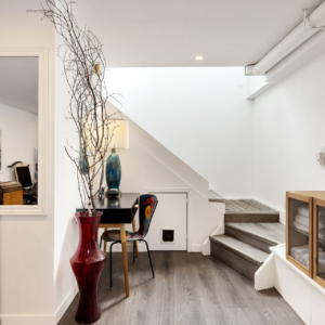 82 Rogers Road, Toronto – Spectacular work-live space at Dufferin & Rogers. This hidden gem is pure cool on the inside while sitting incognito on the street, with both residential and commercial zoning. Open your own art gallery, photography studio, yoga studio, architect’s office, a market, café or sub-divide into apartments – the options are limitless! With soaring ceilings, walls adorned with beautiful murals, and a fantastic layout, this is the ultimate creative space.