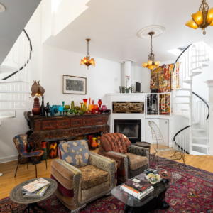 The home features a chef’s kitchen, two sets of spiral stairs, two fireplaces, rooftop garden and loft bedroom with four-piece ensuite bathroom. Main floor laundry. Many recent upgrades. Lower level could be a second bedroom. The TTC is at your doorstep, plus steps to Eglinton LRT, Corso Italia, café’s, restaurants and much more! Permit parking on street.
