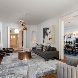 87 Highland Avenue – A grand and spectacular Rosedale home with over 6,000 square feet (including the lower level), 5+2 bedrooms and 5 bathrooms on a 50′ x 258′ ravine-backing lot, with plenty of table land. Enjoy luscious greenery in the summer and city skyline views in winter. Classic features abound in this home, such as beautiful crown mouldings, high ceilings, deep baseboards and a detailed fireplace mantle. These classic features blend perfectly with the home’s contemporary finishes to make it truly stunning.