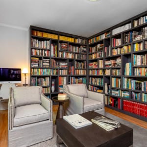 On the second floor, the lavish master retreat features a gas fireplace, south-facing bay window, an office with a balcony perched high above the backyard garden, a walk-in closet with organization systems, a 6-piece ensuite bathroom with two vanities, soaker tub, walk-in shower and marble details throughout. The second floor has a family room/library with walls of custom built-in shelving. There is also another spacious bedroom with a 3-piece ensuite bathroom, and a full laundry room.