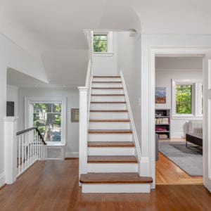 The third floor has three more large bedrooms, a 4-piece bathroom and a secret room hidden behind the hallway bookcase, perfect for the kids’ art room. The lower level has a family/media room with gas fireplace and walls of built-in shelving, plus a walk-out to the backyard garden. There is a 3-piece bathroom, second laundry room and plenty of storage. This wonderful home provides easy access to the downtown core, parks, transit, markets as well as top public and private schools.