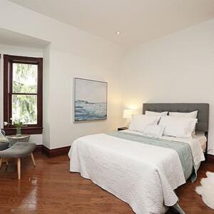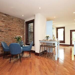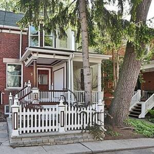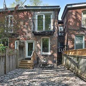 9 Dermott Place – Gorgeous 3 bedroom home situated in Cabbagetown! Gleaming hardwood floors, exposed brick, open concept and plenty of space. Kitchen features built-in stainless steel appliances, tons of storage, floating shelves, breakfast bar, and walk-out to back yard. Upstairs is the spacious primary bedroom and 2 more bedrooms, a 3pc bath, and an upper balcony that overlooks a private park. Separate entrance to finished lower level that has a recreation room, office space, and laundry. Parking is rear laneway access. This gem is on a quiet, hidden street and walking distance to anything you need!