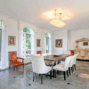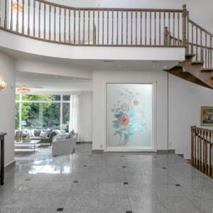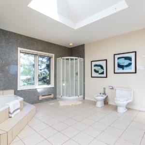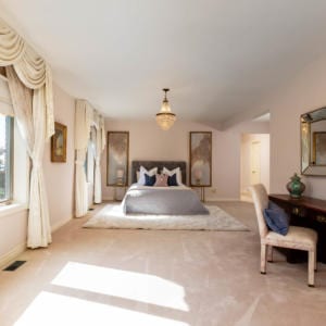 9 Guildcrest Drive, Scarborough – This beautiful custom-built home has stunning views of Lake Ontario in a prime location on nearly half an acre of property. The grand entrance foyer soars two stories overhead and boasts a circular oak staircase and imported gleaming chandelier. The main floor features spacious principal rooms with nine foot ceilings, plenty of windows that flood the home with natural light, a main floor office that can double as a bedroom with a four-piece ensuite bathroom, plus there is also a solarium.