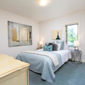 The second floor includes a living area with a sizable picture window, through which you can see across the lake. The master retreat includes the bedroom area, sitting area, walk-in closet and huge six-piece ensuite bathroom. There are three other bedrooms and five-piece bathroom rounding out the second floor.