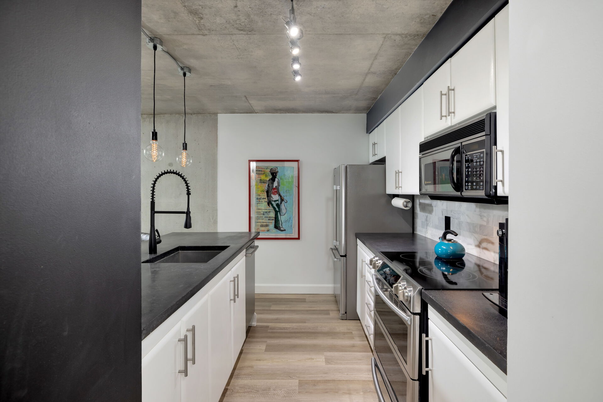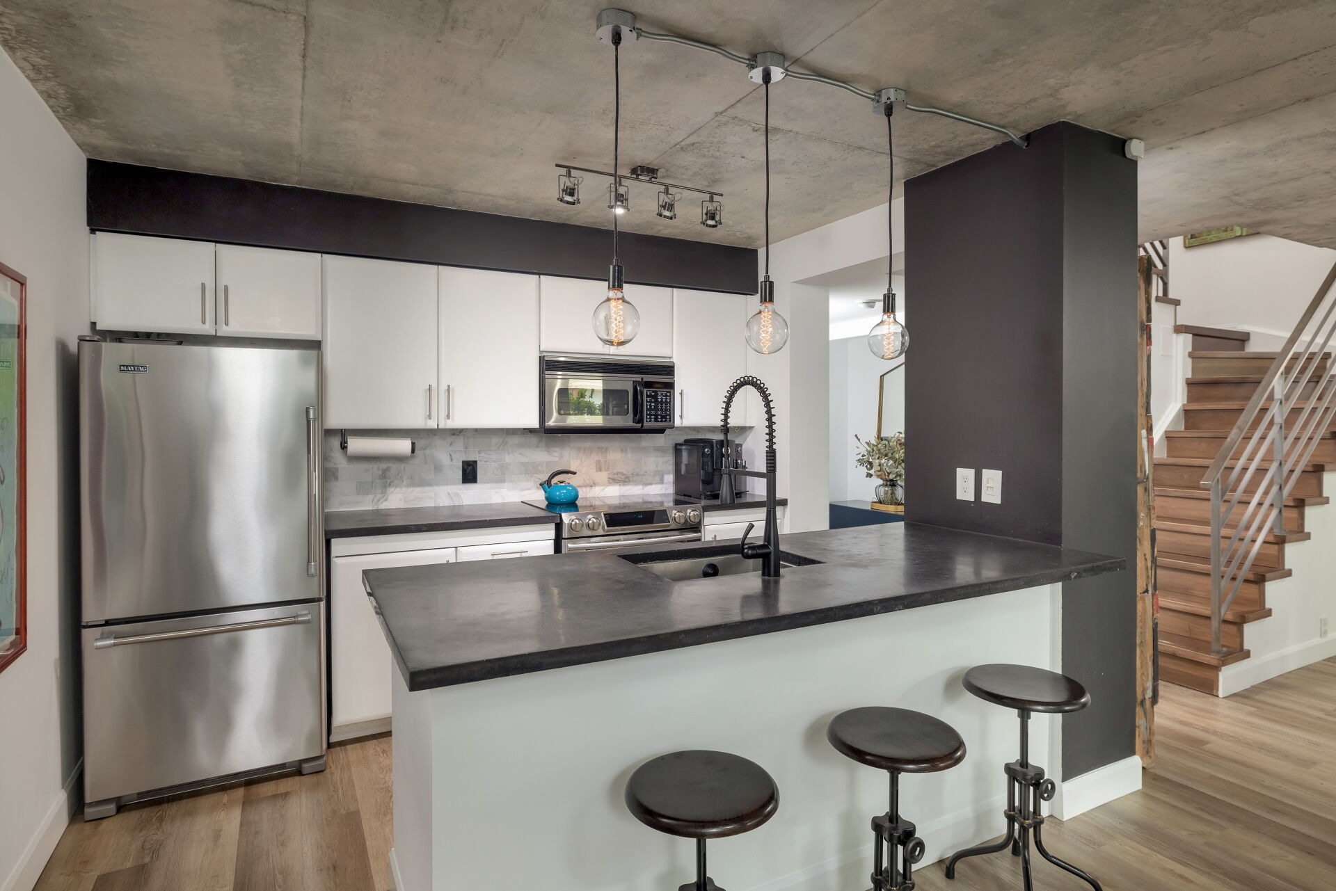 Attention Loft Lovers!! King West Living at its best! One of the largest, 2 bedroom, 2-storey lofts in this prime boutique building. Well appointment luxury & privacy, open concept main floor living spaces designed for seamless entertaining. Living room boasts a two-storey ceiling, the modern kitchen features an island and extensive storage. Primary bedroom features a window wall and stunning spa-inspired ensuite bath and walk-in closet. Custom lighting, closet systems, sliding barn door in the 2nd bedroom, and many other designer finishes. Parking & locker included. Steps to vibrant King & Queen West, Massey Harris Park, Trinity Bellwoods, TTC, and many cafes, restaurants, and patios galore. Maintenance fee includes all utilities!
