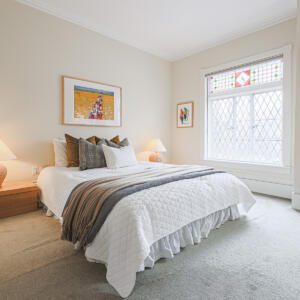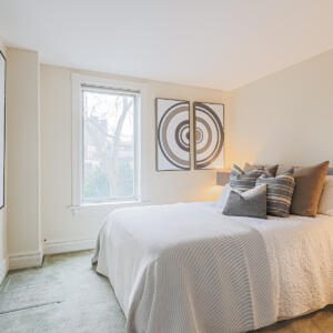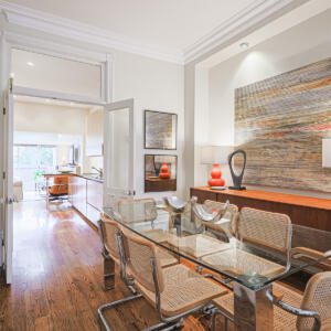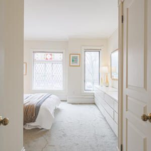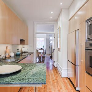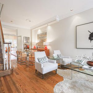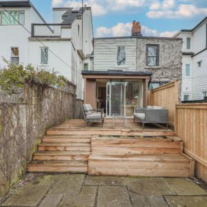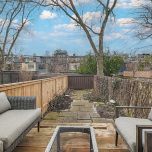99 Marlborough Ave, Toronto – Magnificent 2 bedroom, 2 bath home in a fantastic location on Marlborough, just steps to Yonge Street. The main floor features soaring ceilings, deep crown mouldings, high baseboards and wide plank hardwood floors throughout, plus transom windows and stained glass details. The kitchen boasts stone counters, built-in appliances and sleek custom cabinetry. The main floor also includes a sun-drenched family room with skylight, sliding doors, built-in bookshelves and cozy gas fireplace, plus a powder room. On the second floor, the primary bedroom is very spacious and comes complete with a walk-in closet and a walk-through to the luxurious contemporary bathroom. The second bedroom is sizeable and includes a large closet and a south-facing window that overlooks the backyard. The basement provides for plenty of storage and laundry. The backyard is a private, low-maintenance urban garden with a shed, recent deck and fence, perfect for quiet enjoyment and also for entertaining. This wonderful home is a short walk to the TTC, Shoppers and LCBO, plus the York Racquet Club, Toronto Lawn, many of Toronto’s finest restaurants, and specialty shops the “Five Thieves”. Quick access to downtown, Yorkville, and so much more.